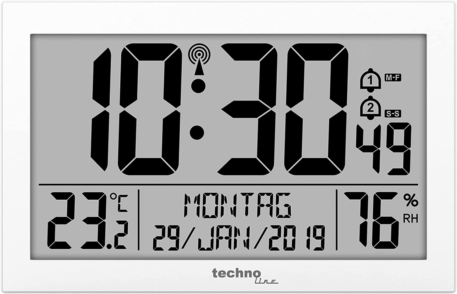 Стенен часовник Technoline WS8016, Цифров, Батерия, Модерен, Пластмасов, Термометър, Календар, Голям дисплей, Бял