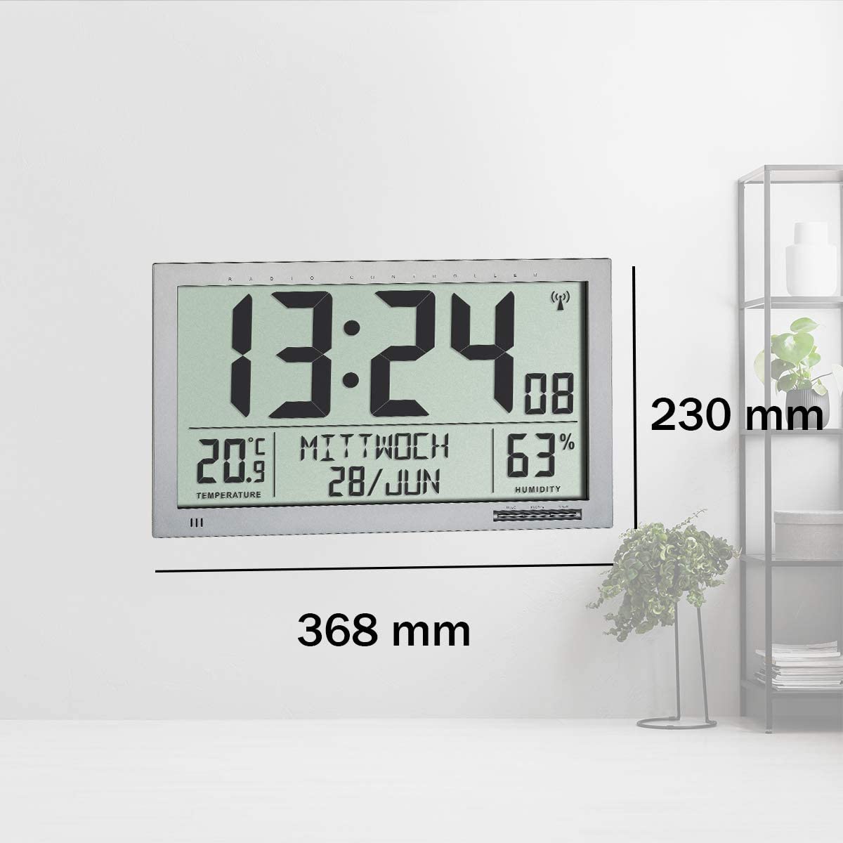 Стенен часовник TFA Dostmann 60.4517.54 XXL, Цифров, Батерия, Модерен, Термометър, Календар, Голям дисплей, Размер 36см