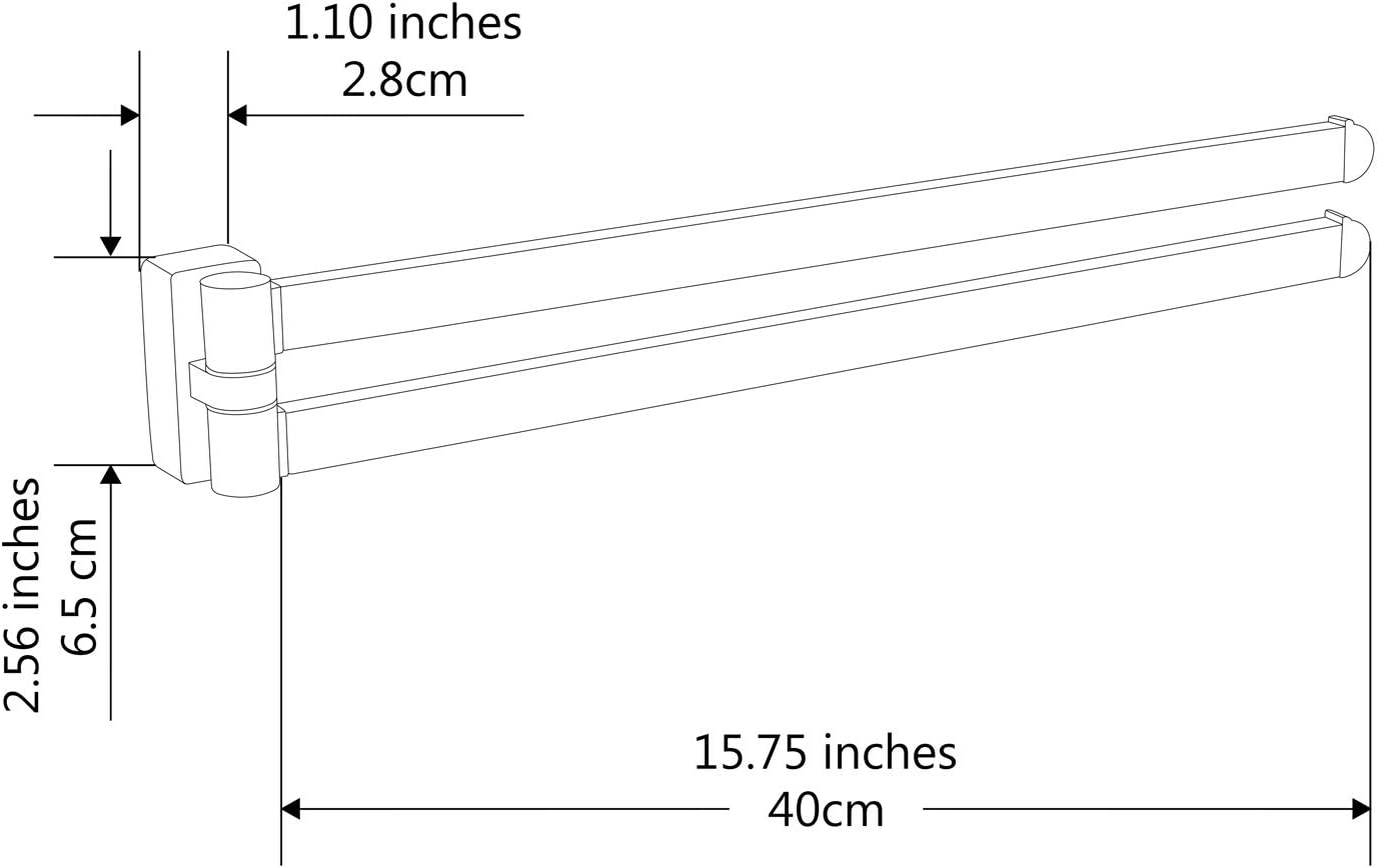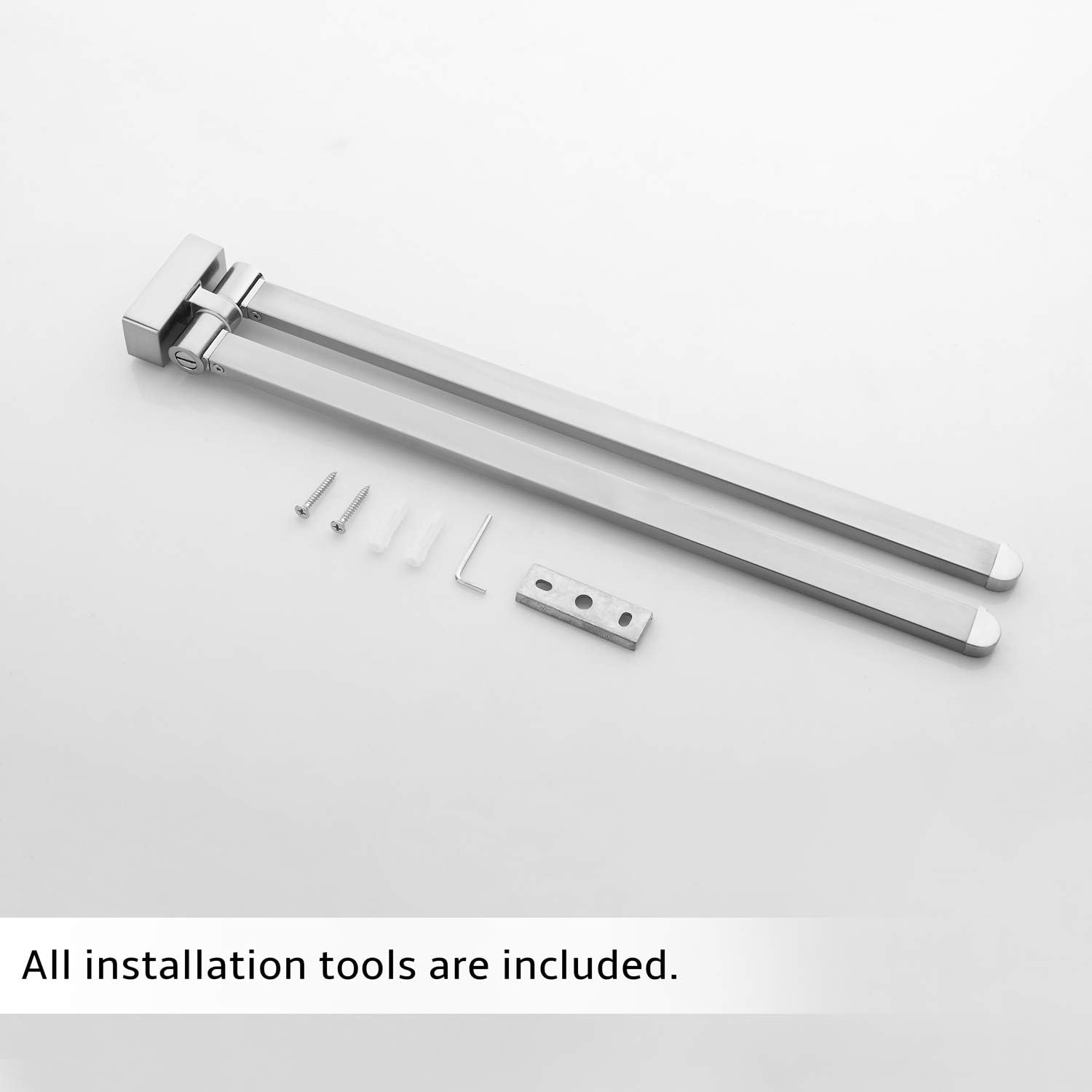 Въртяща се на 180° въртяща се поставка за кърпи от неръждаема стомана с 2 сгъваеми рамена, които могат да се сгънат към стената, когато не се използват.