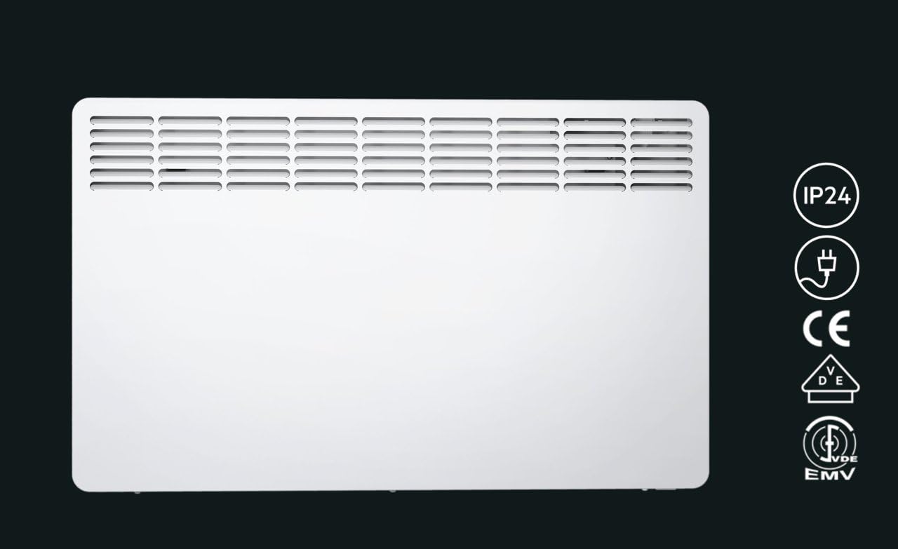 • Бързо затопляне: Стенен конвекторен отоплител за пълно отопление или ефективно преходно отопление, електронен контролер с LC дисплей, метален корпус, настройка на температурата от 5°C до 30°C.