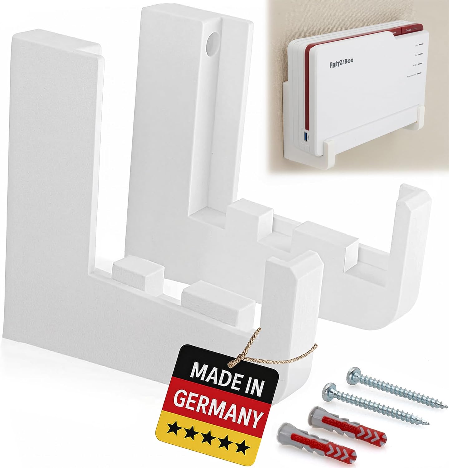 Стенната стойка Fritzbox 5690 Pro се предлага с монтажни материали, които правят монтажа лесен. Скоба, която държи вашия Fritzbox 5690 Fiber и подобни модели здраво към стената. Оценката „Произведено в Германия“ гарантира най-високо качество и екологично производство, използващо 3D печат.
