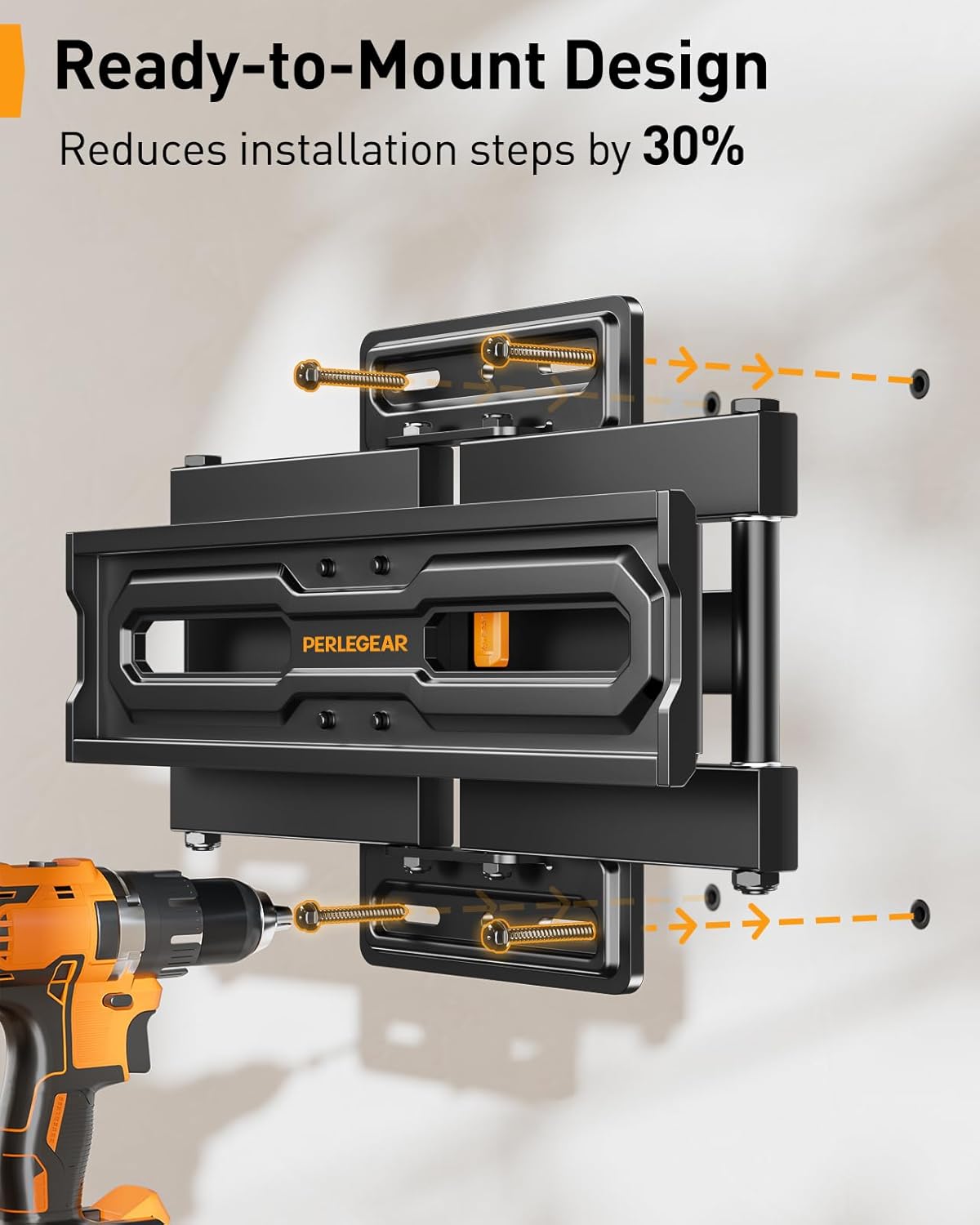 Стенна стойка за телевизор Perlegear за телевизори 23-70 инча до 50 кг, регулируема по височина стойка за телевизор с бързо регулиране на наклона, въртяща се стойка за телевизор 55 инча, макс. VESA 400x400 мм