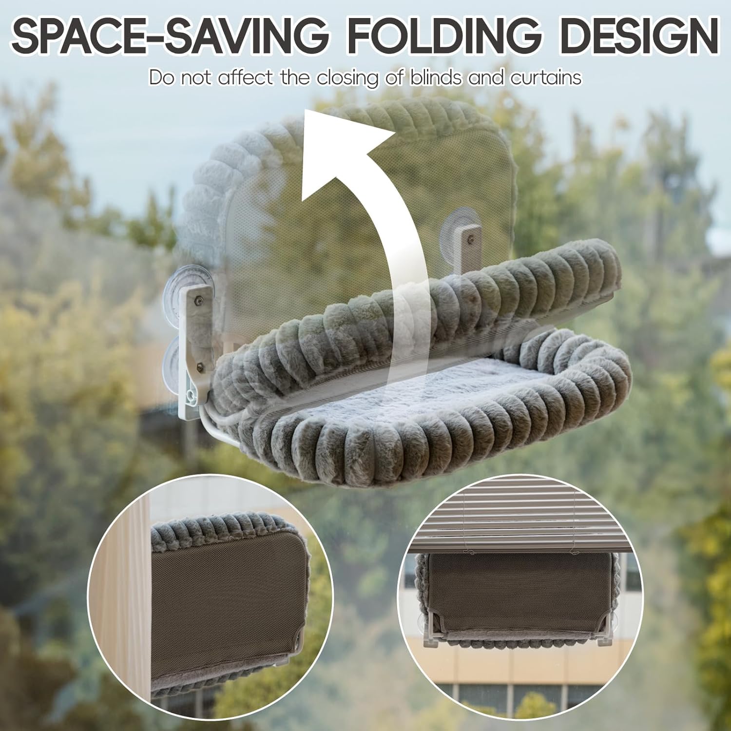 • ГЪВКАВ И СПЕСТЯВАЩ ПРОСТРАНСТВО: Този хамак за прозорец за котки е напълно сгъваем и благодарение на интелигентния си дизайн, не възпрепятства движението на завесата. Така спестява място и не заема много място. Лесният монтаж не изисква инструменти и позволява бърз монтаж.