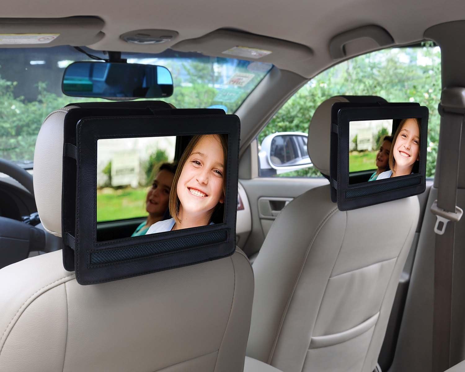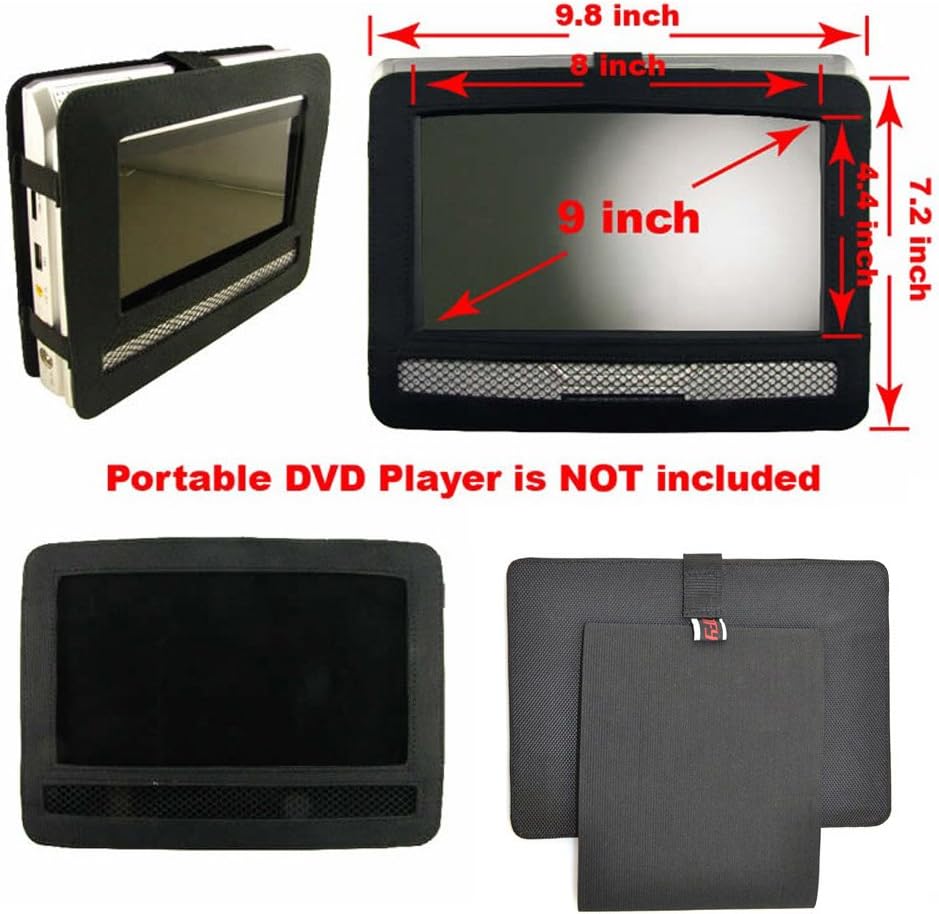 Тази стойка за автомобилна облегалка за глава за преносими DVD плейъри е предназначена за преносими DVD плейъри с въртящ се и сгъваем дизайн. Ако LCD екранът на вашия плейър може да се завърта и да превключва в изглед тип таблет, той би трябвало да се побере в тази стойка за автомобилна облегалка за глава. Моля, внимателно прегледайте снимките и размерите в обявата, за да се уверите, че LCD екранът на вашия плейър е правилно подравнен с отвора в облегалката за глава на вашия автомобил.