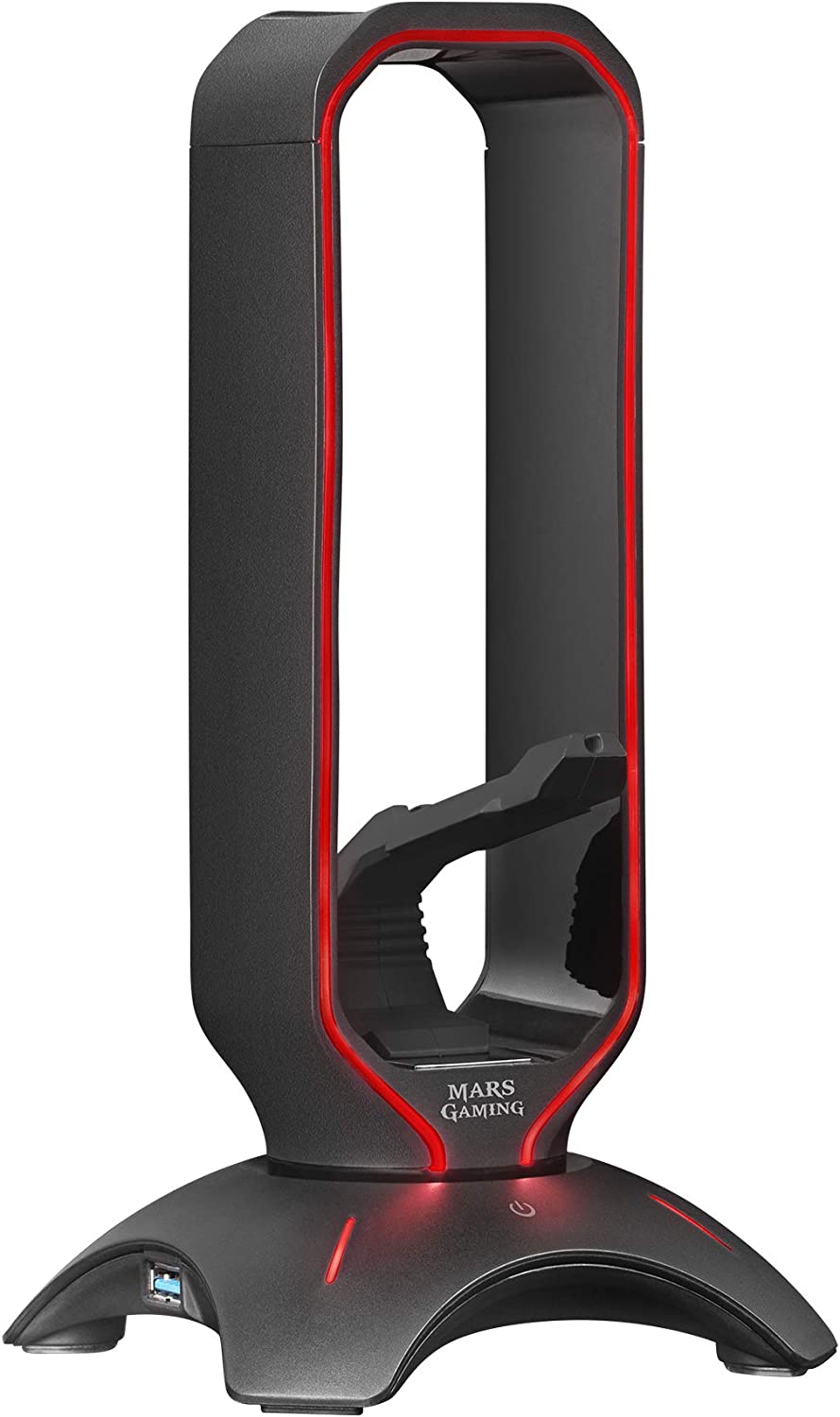 Стойка за слушалки Mars Gaming MAH1V2, LED подсветка, Стабилна основа, 2xUSB 3.0, Черна