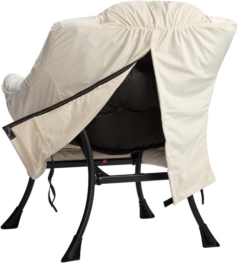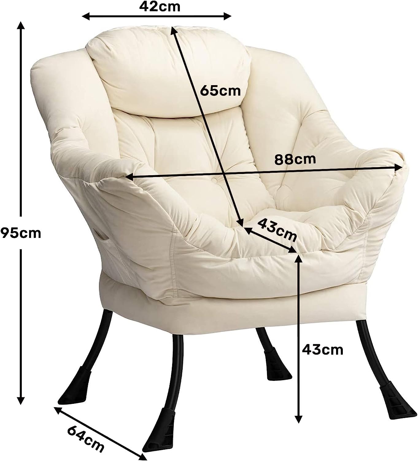 • Удобната седалка и подлакътници ви предлагат спокойно изживяване при сядане и ще намерите достатъчно релаксация и спокойствие след тежка работа или учене. Този шезлонг е идеален за офиса във всекидневната, спалнята и т.н. и лесно се съчетава с вашите мебели.