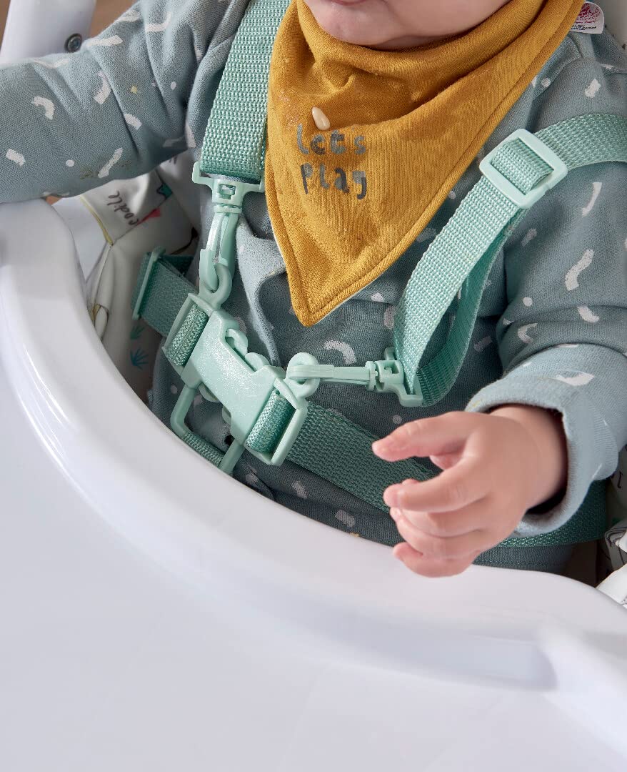 • Столчето за хранене Snax има 5-точков предпазен колан, който пази вашето мъниче през цялото време.