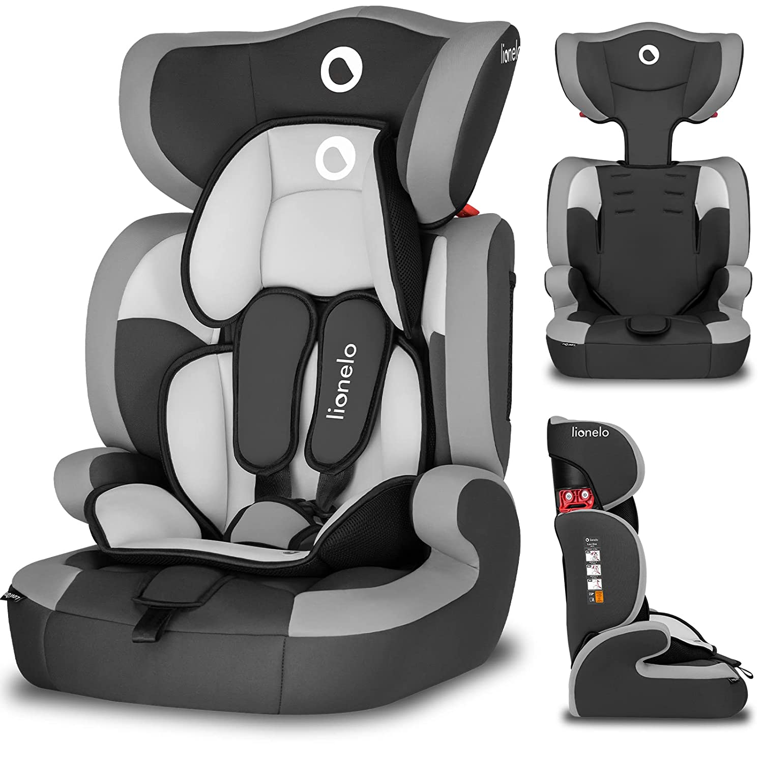 Столче за кола LIONELO Levi One, Товаримост до 36кг, Странична защита, Подвижна облегалка, Макс. височина до 120см, Сиво