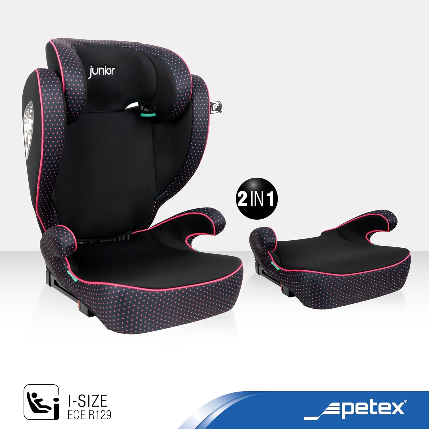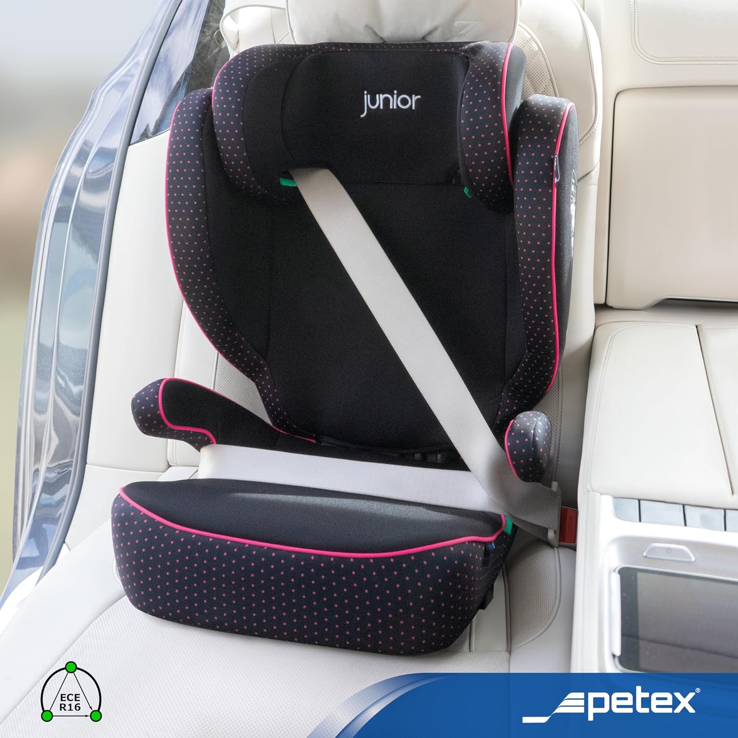 Столче за кола PETEX с ISOFIX Basic Plus i-Size стандарт съгласно ECE R129 за деца от приблизително 100 - 150 см, регулируемо по височина детско столче за кола в розово, пакет от 1