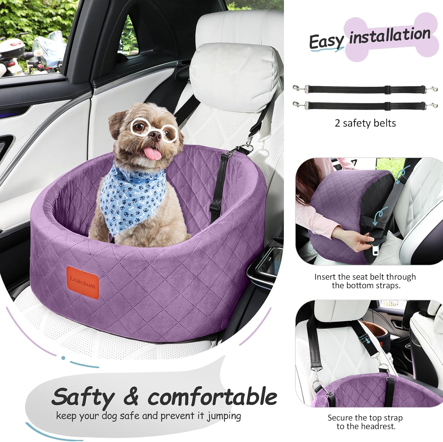 • Безопасност – Столчето за кола за кучета Lealchum има регулируеми презрамки и каишка, подходяща за малки кучета. Разполага с неплъзгащо се дъно, канал за предпазния колан и множество защитни слоеве, за да осигури ефективна защита на кучетата по време на пътуване. Продуктът е изработен от мека пяна с омекотяващи свойства и е вдъхновен от нашите силни умения за шиене.