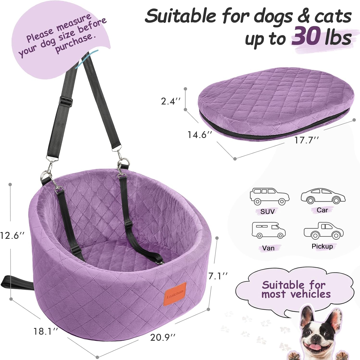 Столче за кола за кучета, удобно столче за кола за домашни любимци с предпазни каишки, миещо се легло за пътуване с неплъзгащо се дъно (лилаво, малко)
