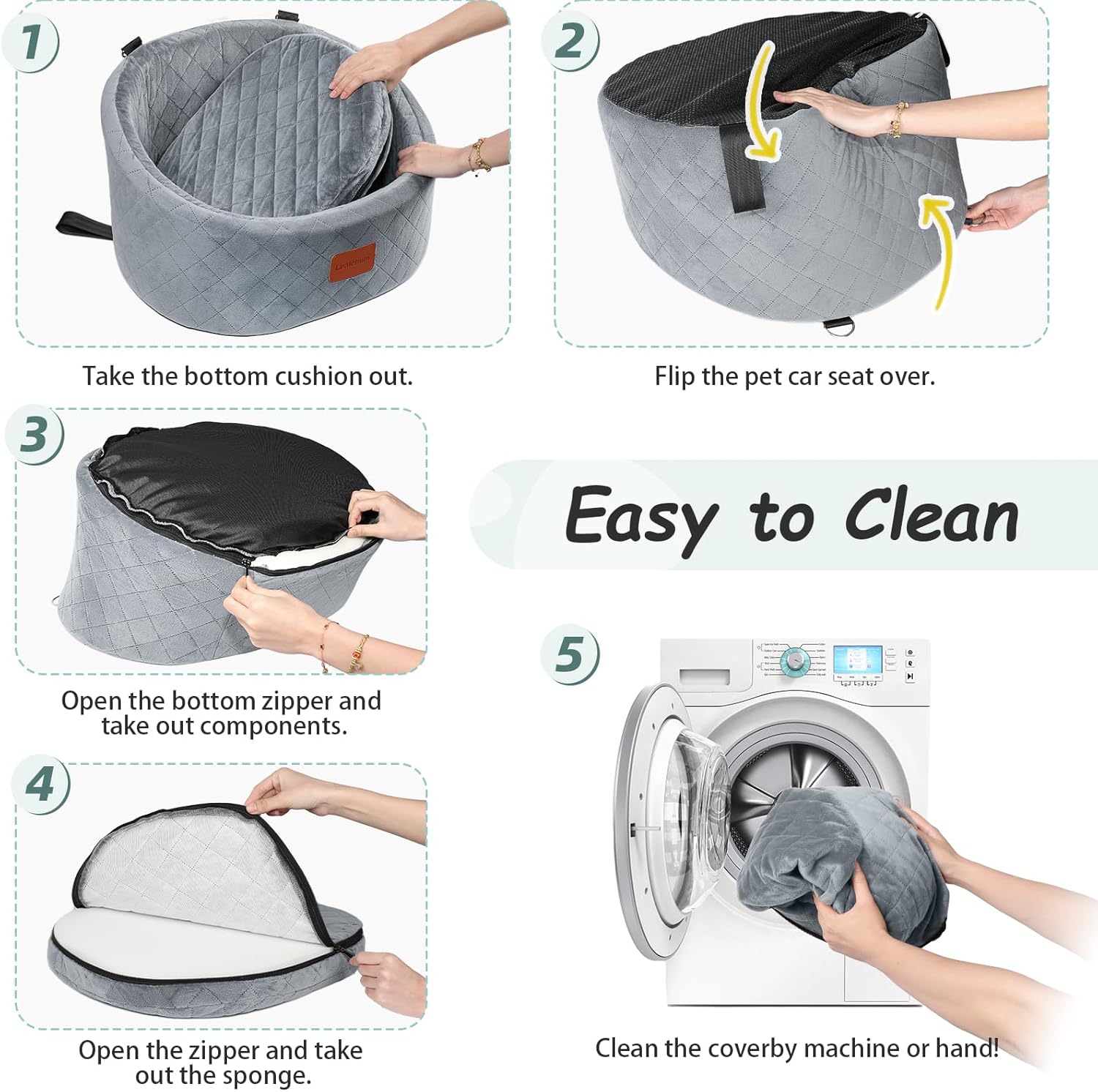 • Удобство: Монтирането на столчето за кола за кучета Lealchum в кола е изключително лесно и може да се използва във всички превозни средства, както на предните, така и на задните седалки. Лесно се разглобява и пере, тъй като може да се пере в пералня. Има цип отвътре за лесно отстраняване на пяната за почистване на калъфа, а сглобяването е лесно. Лекото му качество го прави много преносимо, което го прави важен артикул за къмпингуване с кучета.