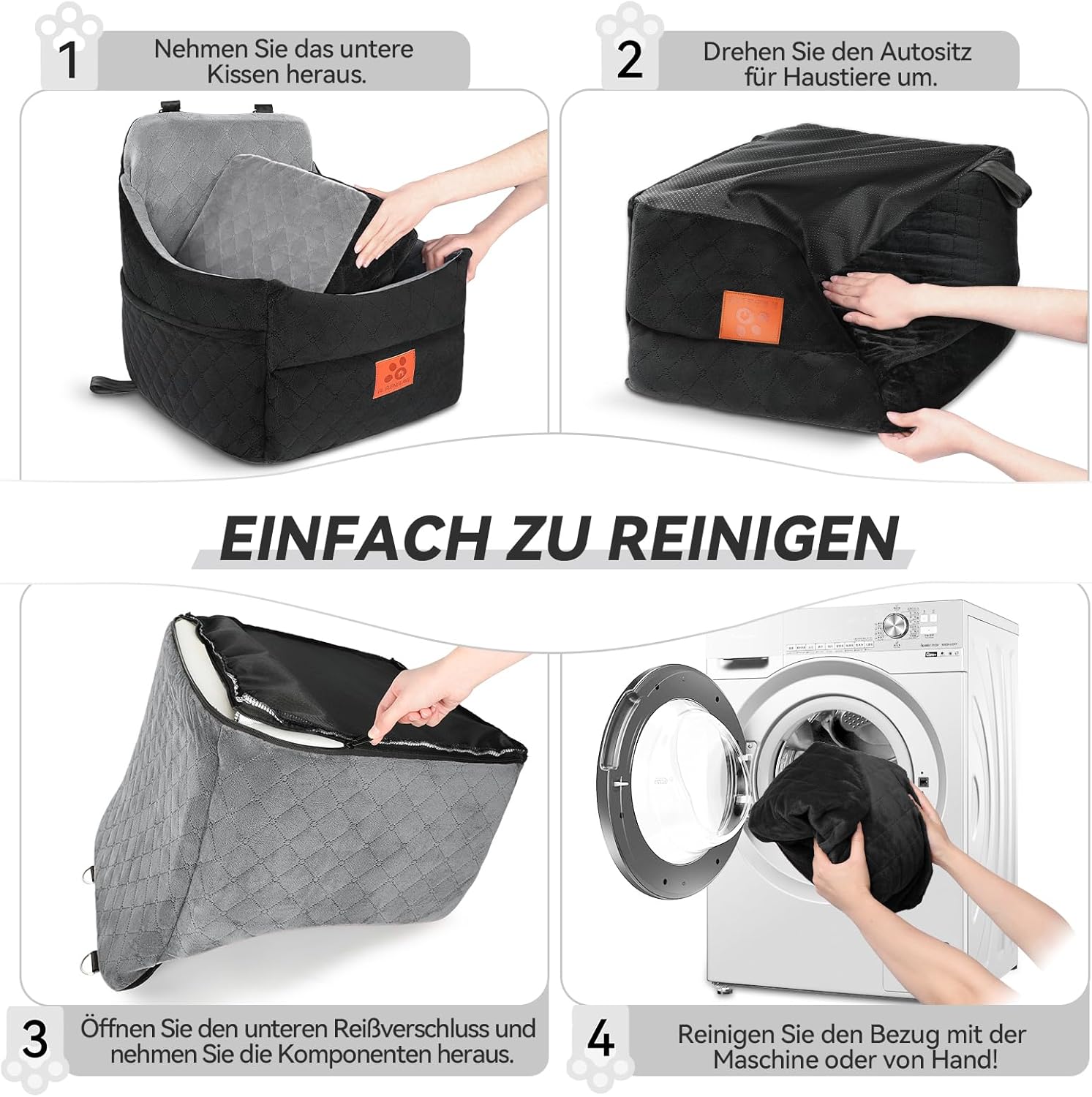 • ПОДСВАЛЯЩА СЕ И ПЕРЕ Тази седалка за кучета е напълно сваляема и може да се пере. Просто отворете ципа в долната част, за да отстраните пяната, и след това поставете калъфа за легло за кола за кучета в пералнята за почистване. Приятелско напомняне: Леглото за кола се доставя вакуумно опаковано. След отваряне на опаковката, трябва да изчакате 24-48 часа, за да възвърне оптималната си форма.