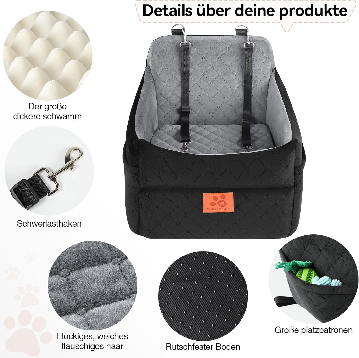 Столче за кола за кучета за малки/средни кучета, столче за кола за кучета с дебела подплата под 16 кг, свалящо се, перещо се столче за кола за домашни любимци (черно/сиво)