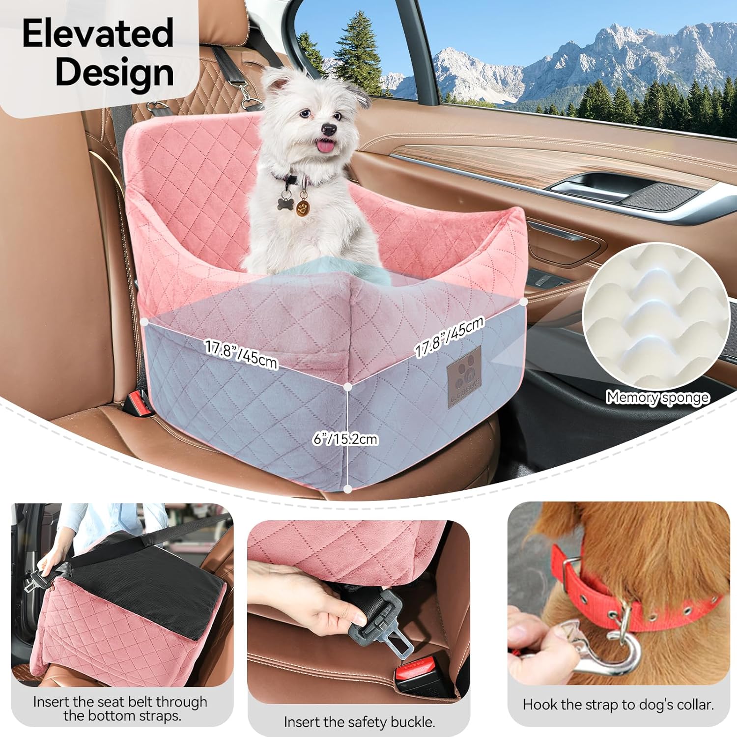 Столче за кола за кучета за малки/средни кучета, столче за кола за кучета с дебела подплата под 16 кг, свалящо се, перещо се столче за кола за домашни любимци