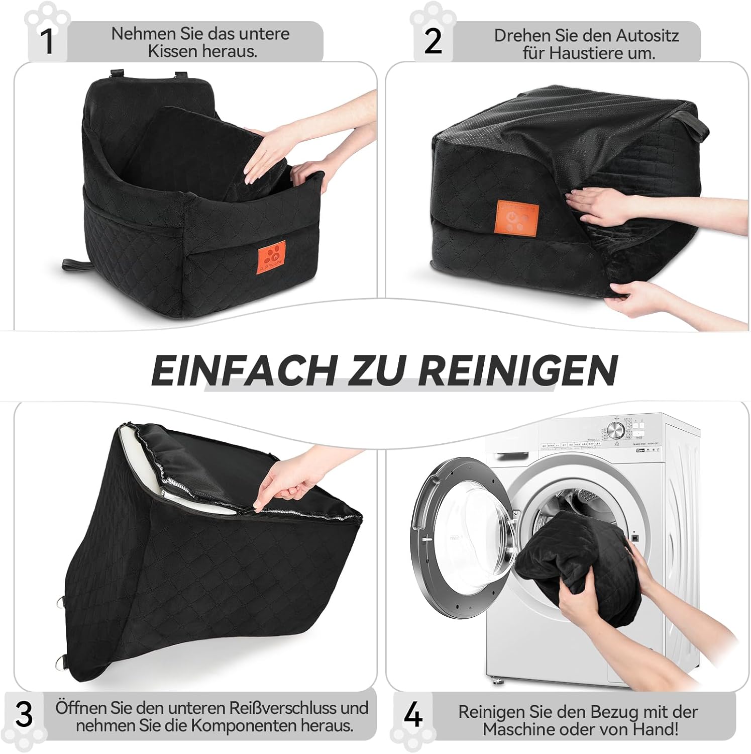 • ПОДСВАЛЯЩА СЕ И ПЕРЕ Тази седалка за кучета е напълно сваляема и може да се пере. Просто отворете ципа в долната част, за да отстраните пяната, и след това поставете калъфа за легло за кола за кучета в пералнята за почистване. Приятелско напомняне: Леглото за кола се доставя вакуумно опаковано. След отваряне на опаковката, трябва да изчакате 24-48 часа, за да възвърне оптималната си форма.