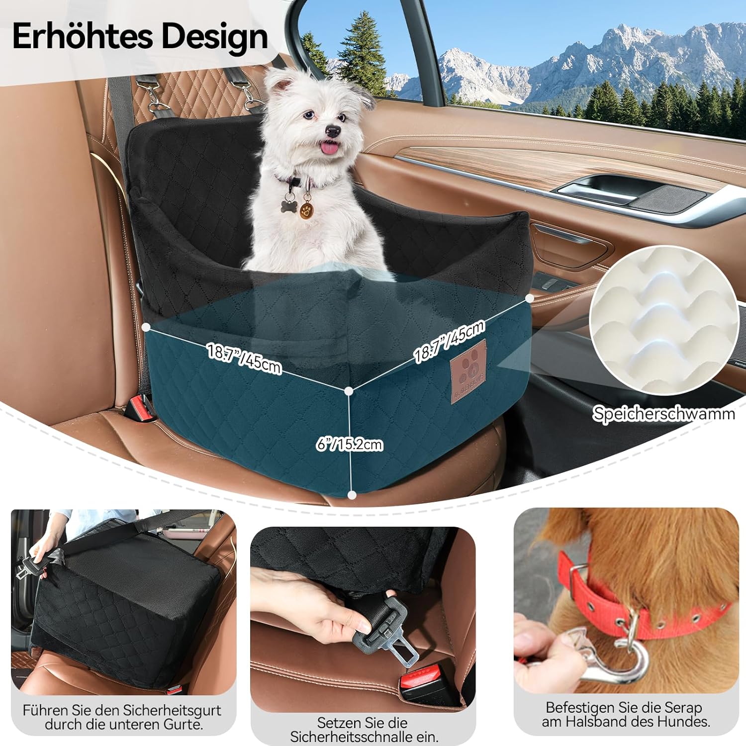 • Комфортни материали Седалката за кучета е с ултра мек повърхностен материал и е оборудвана с мека възглавница от мемори пяна. Възглавницата от пяна с форма на яйце с височина 6 инча на дъното гарантира, че вашият домашен любимец може да наблюдава околната среда по-добре, което облекчава тревожността при пътуване и осигурява на вашия пухкав приятел приятно пътуване.