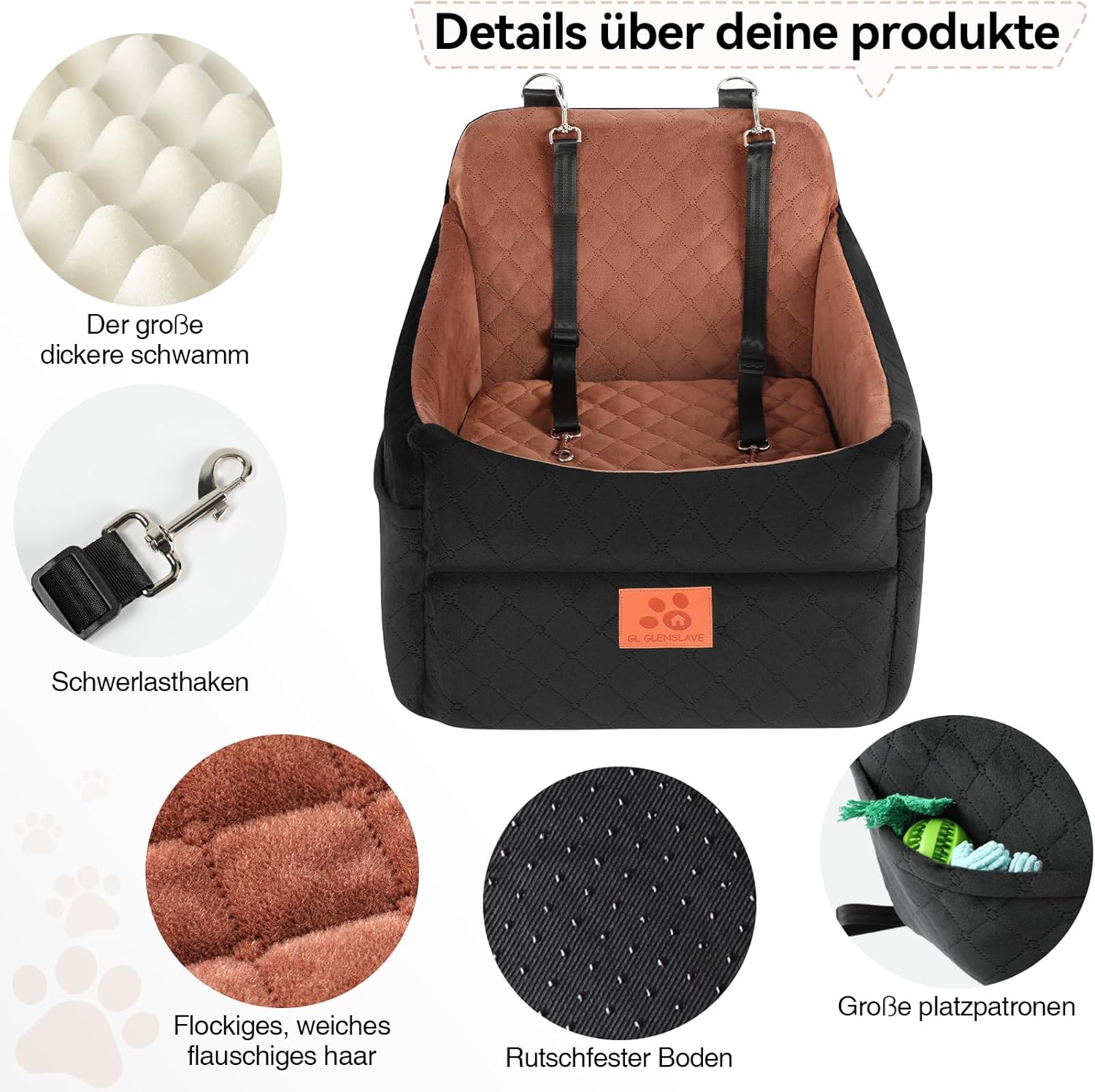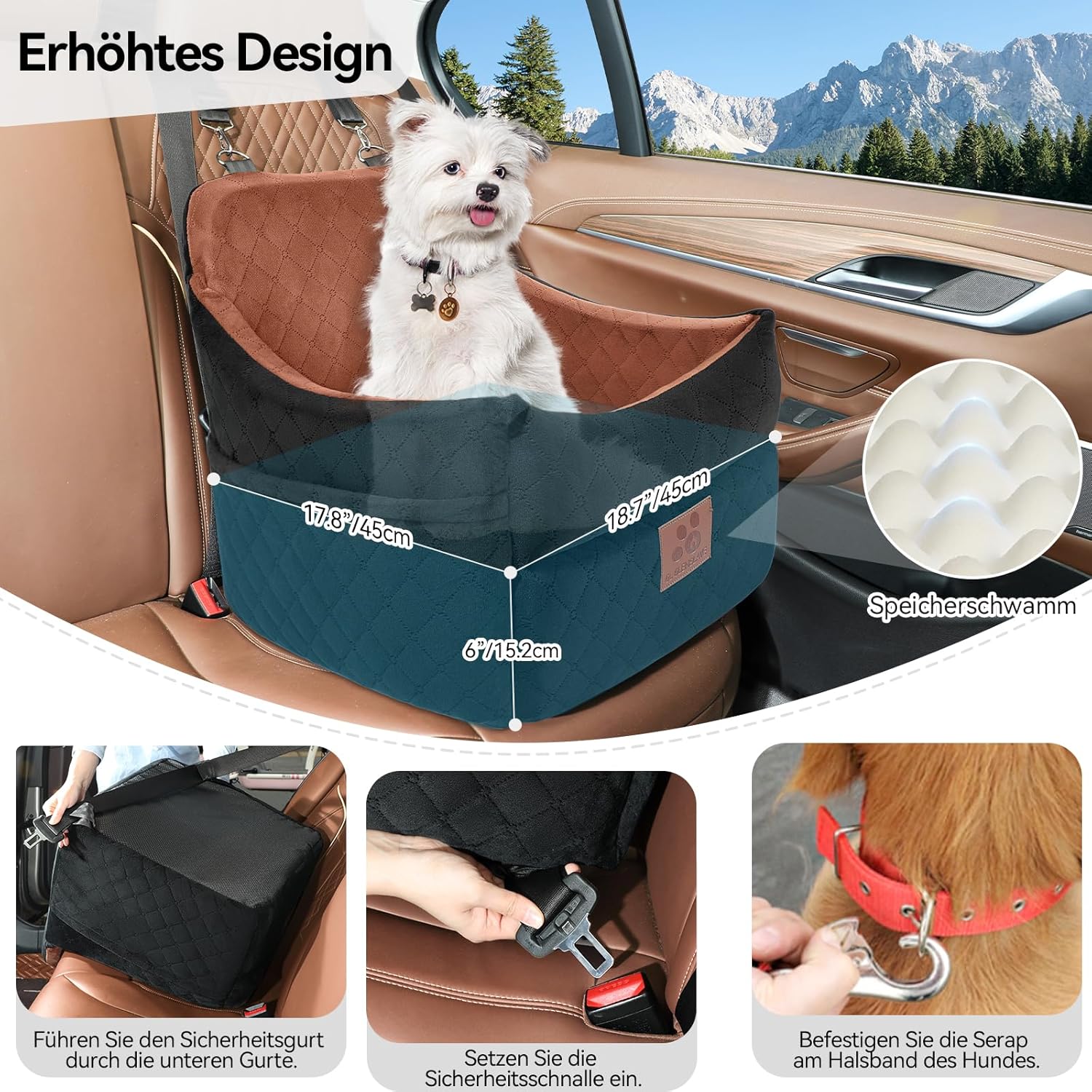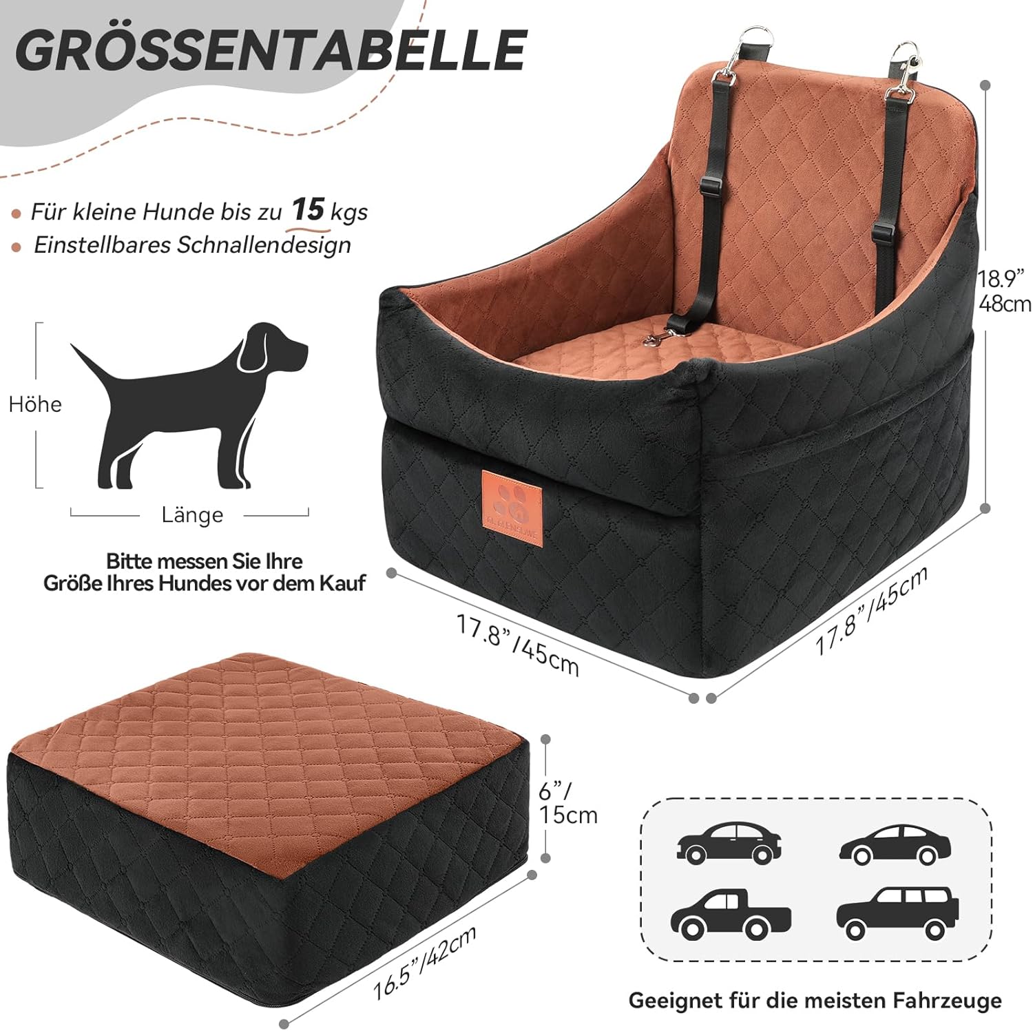 Столче за кола за кучета за малки/средни кучета, столче за кола за кучета с дебела подплата под 16 килограма, свалящо се, перещо се столче за кола за домашни любимци (черно/кафяво)