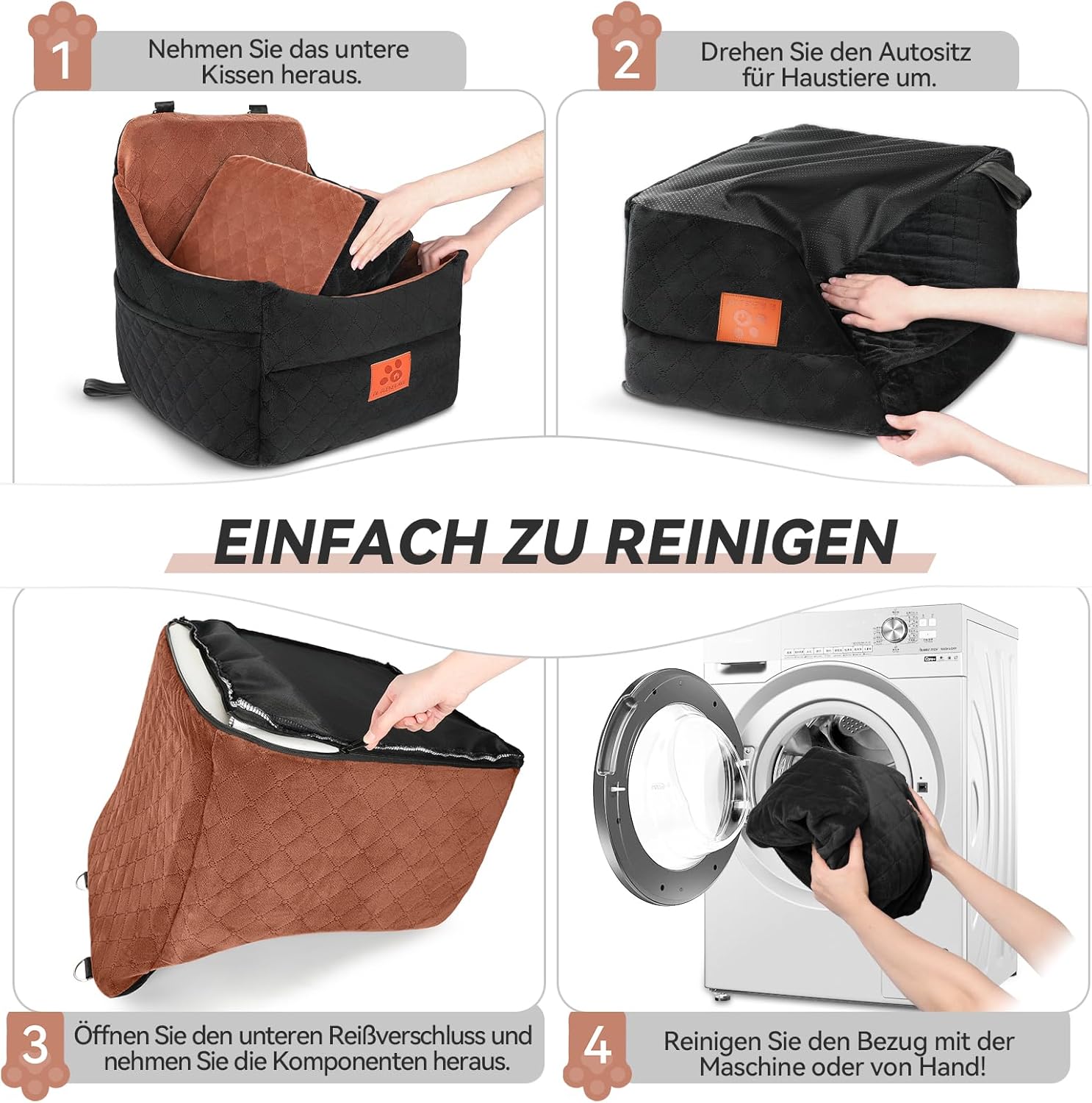 • ПОДСВАЛЯЩА СЕ И ПЕРЕ Тази седалка за кучета е напълно сваляема и може да се пере. Просто отворете ципа в долната част, за да отстраните пяната, и след това поставете калъфа за легло за кола за кучета в пералнята за почистване. Приятелско напомняне: Леглото за кола се доставя вакуумно опаковано. След отваряне на опаковката, трябва да изчакате 24-48 часа, за да възвърне оптималната си форма.