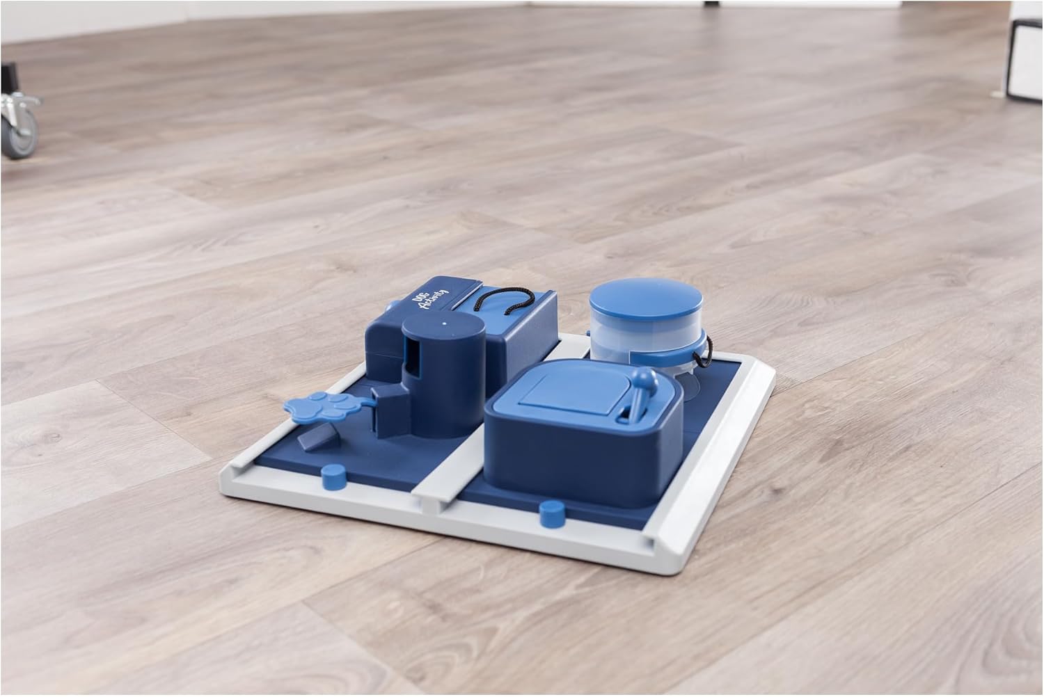 Висококачественият пластмасов материал гарантира издръжливост и е подходящ за миялна машина. За оптимално запознаване и обучение са включени инструкции (английският език не е гарантиран), които предоставят ценни съвети както за начинаещи, така и за опитни любители на кучета. С ниво 3, играта предлага разумно предизвикателство за умните четириноги приятели. Предложете на кучето си рутина за психическа подготовка и стимулирайте интелигентността му със стратегическата игра за кучета TRIXIE - предизвикателно удоволствие от играта за вашия верен спътник!