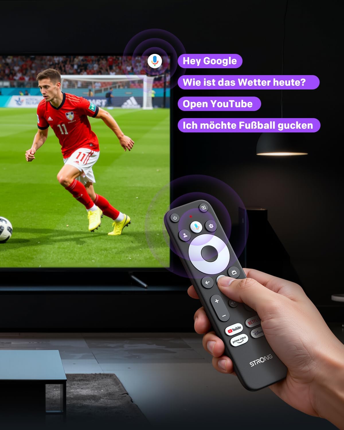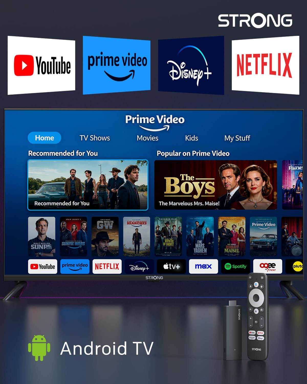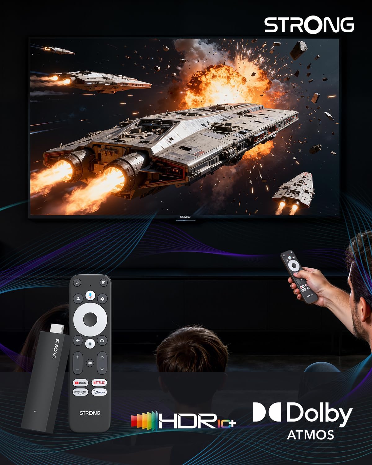 STRONG Leap-UNA Android TV стрийминг стик, WiFi, вграден Chromecast, Android 11 TV Box, Google Assistant, HDR10+, Dolby Audio и Dolby Vision, Google Play, Netflix, YouTube