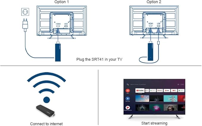 • Студийно качество на телевизора: STRONG SRT41 4K UHD TV stick е идеалният спътник за вашето домашно кино. С Android 11 и 4K UHD за кристално чисти изображения и живи цветове.