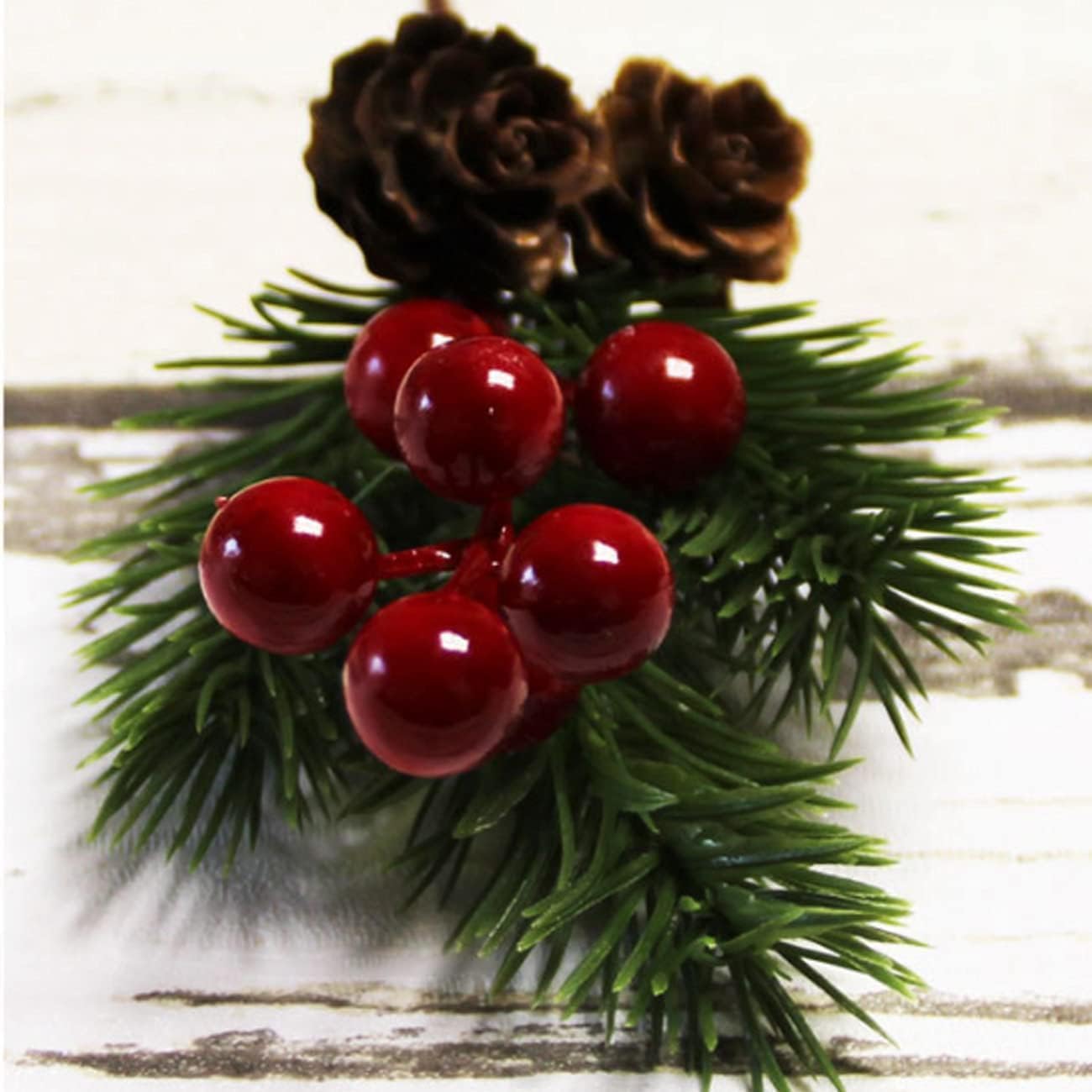Стъбла от червени плодове, борови клонки, вечнозелени плодове, декорация, пакет от 10 - изкуствени борови шишарки, клонки за Коледа, занаяти, венец и зимни празници, кичури цветя, стъбло от джел за декорация
