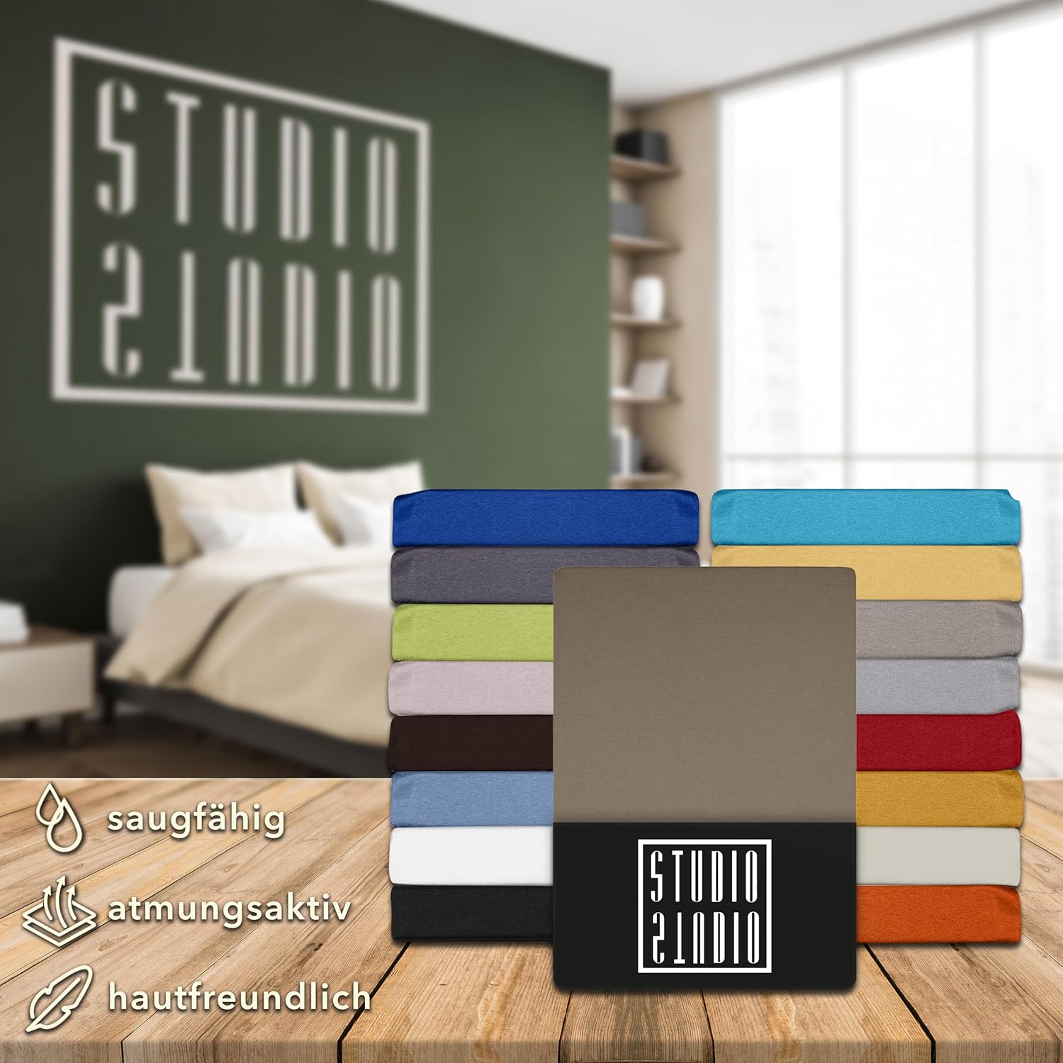 STUDIO Basic чаршаф с фина облегалка 180 x 200 см, 100% пениран памук, Oeko-Tex 100, марково качество, чаршаф от Джърси 180 x 200 см - бежово