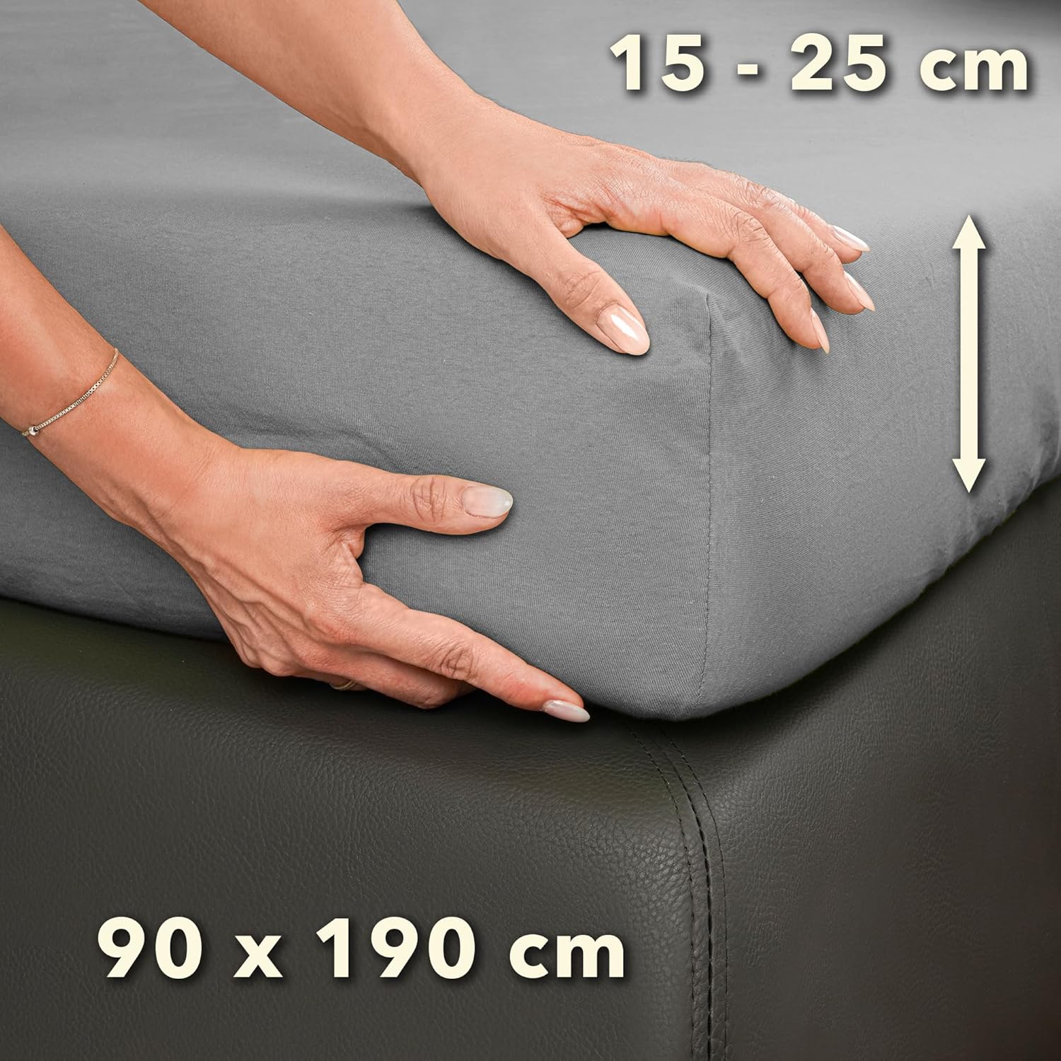 STUDIO Basic чаршаф с фина облегалка, 90 x 190 см, 100% пениран памук, Oeko-Tex Standard 100, чаршаф, Джърси, сребрист