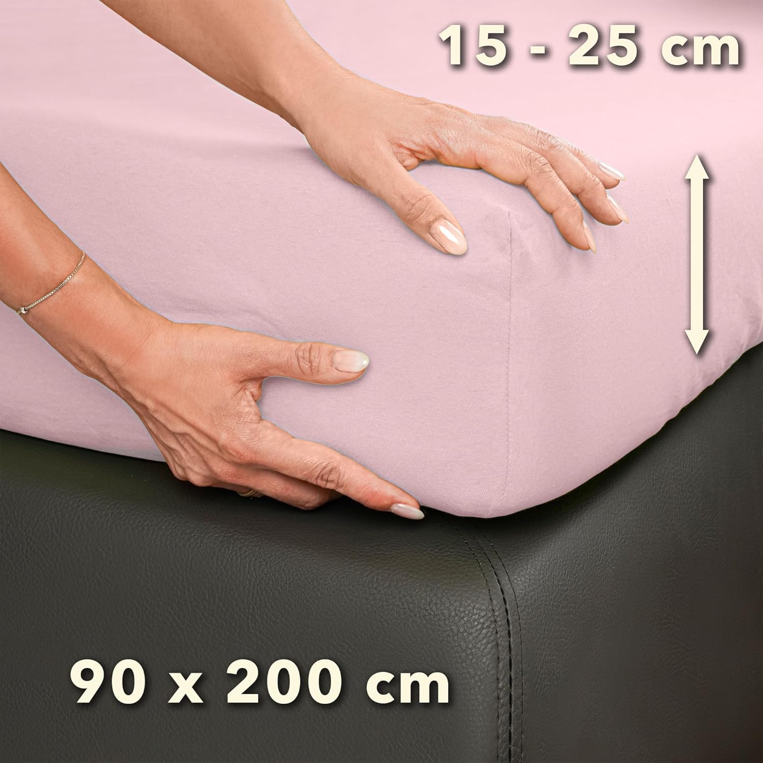 STUDIO Basic чаршаф с ластик 90 x 200 см - Джърси чаршаф с ластик, изработен от 100% пениран памук - пудра - сертифициран по Oeko-Tex, не се глади и еластичен - за матраци 15-25 см