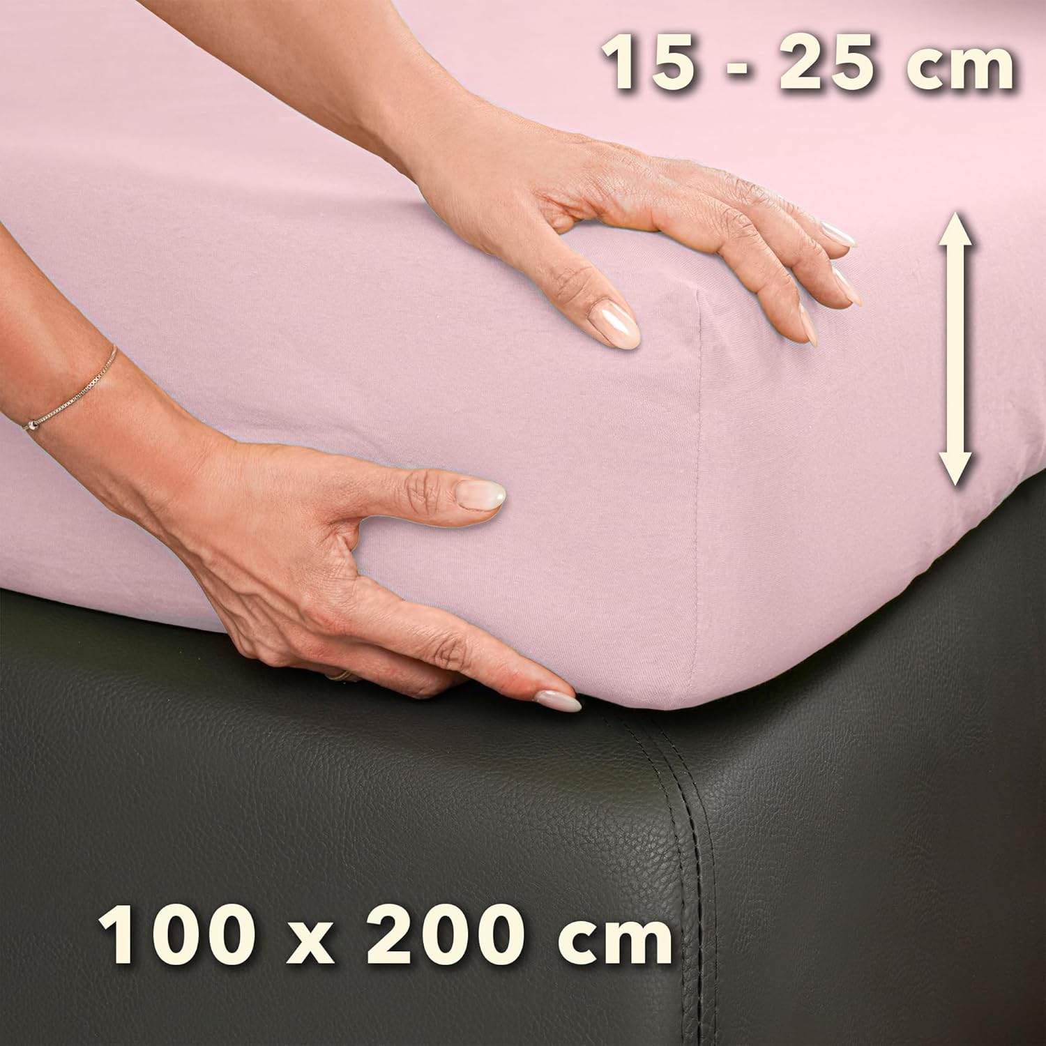 STUDIO Basic чаршафи с фина облегалка, двоен пакет, 100 x 200 см, 100% пениран памук, Oeko-Tex Standard 100, чаршафи от Джърси, пудра, комплект от 2