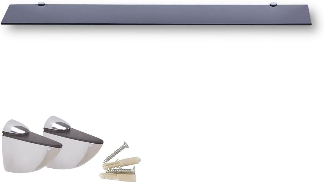Стъклен стенен рафт Euro Tische 100 см, прозрачно стъкло, стъклен рафт за баня, прозрачен стъклен рафт за душ с 6 мм закалено безопасно стъкло и метални държачи, монтиран, различни размери