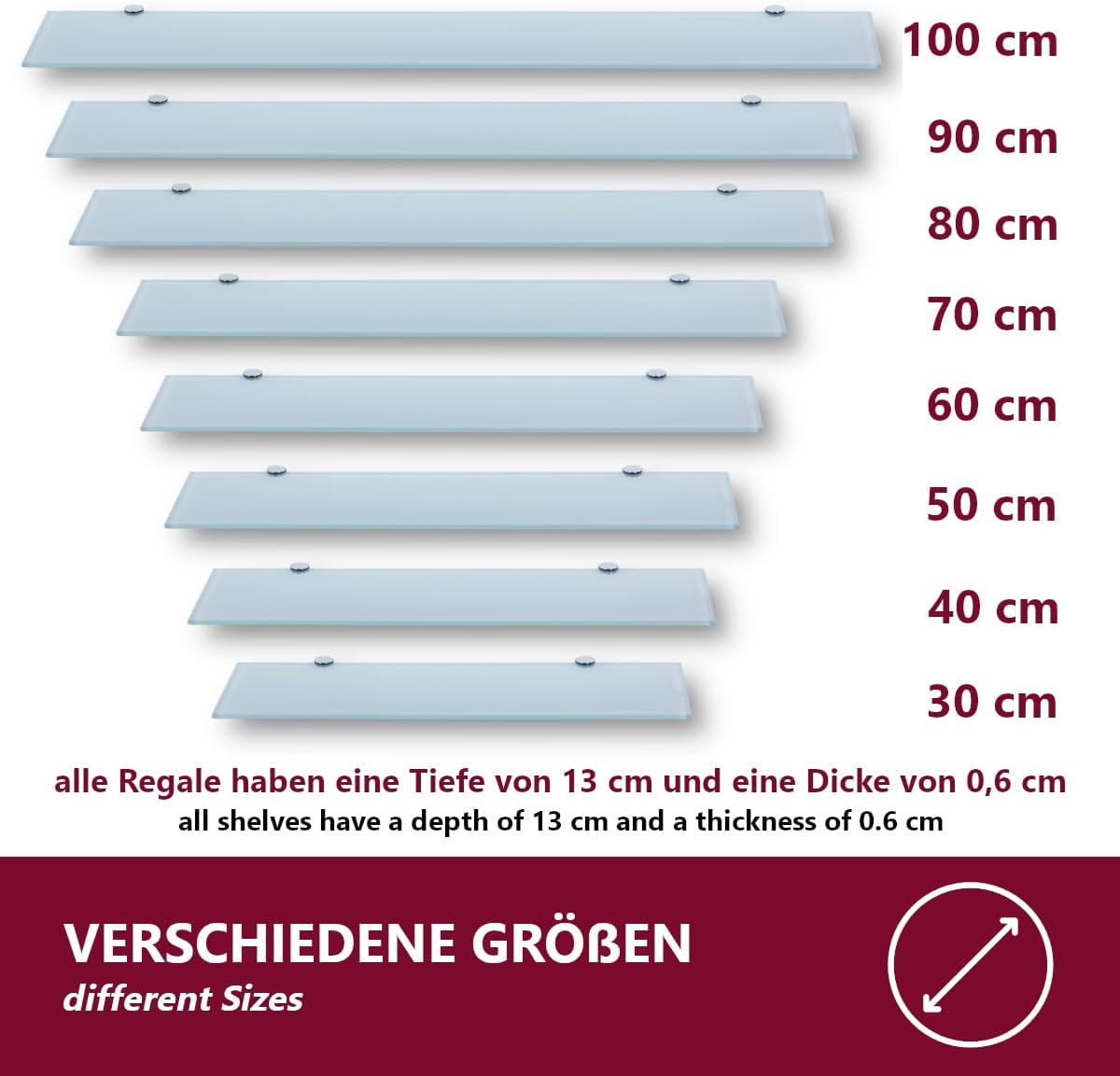 Стъклен стенен рафт Euro Tische, бял – Стъклен рафт с 6 мм закалено безопасно стъкло (ESG), идеален за баня, стъклен рафт за баня с различни размери