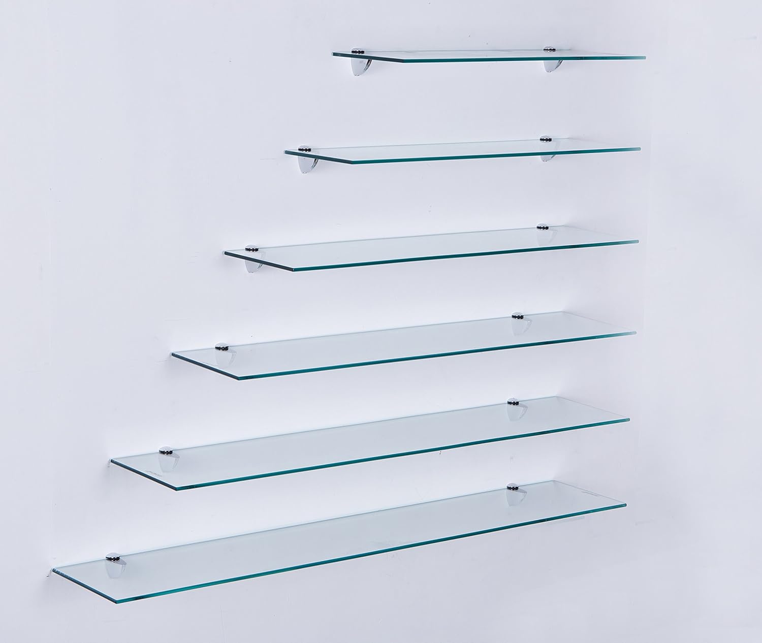 Стъклен стенен рафт Euro Tische, прозрачно стъкло, стъклен рафт за баня, прозрачен стъклен рафт за душ с 6 мм закалено безопасно стъкло и метални държачи, монтиран, различни размери (50 см)