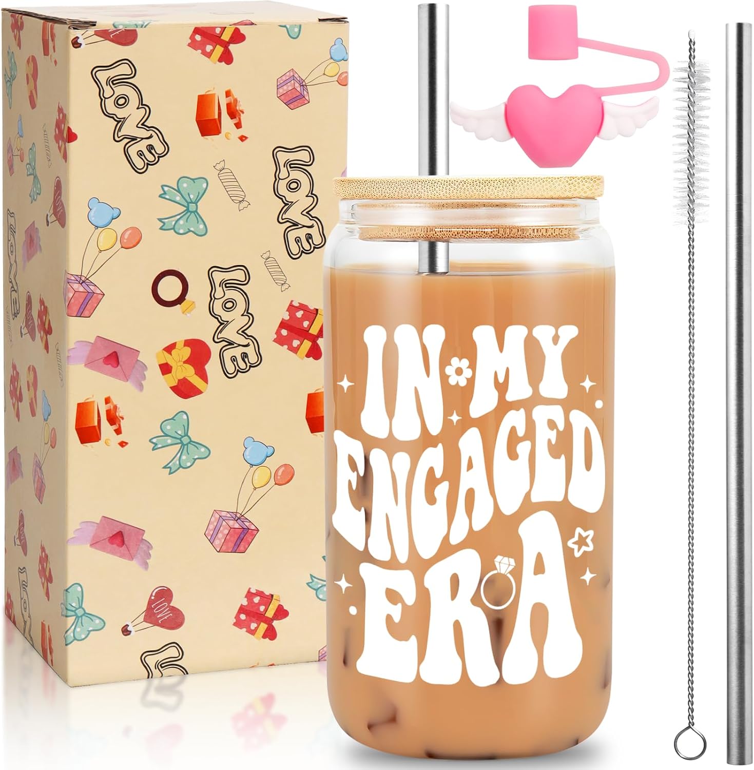 • Перфектният подарък за годеж – тази стъклена чаша с надпис „В ерата на годежа ми“ символизира любов, обвързаност и очакване за споделено бъдеще. Идеална за булки, годеници или сестри, за да отпразнуват този специален момент.
