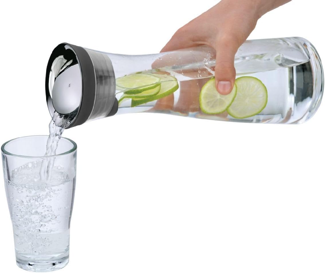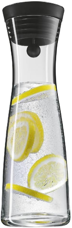 Стъклена кана за вода WMF Basic, 1 литър, Стъклена гарафа с капак, Силиконов капак, CloseUp затваряне