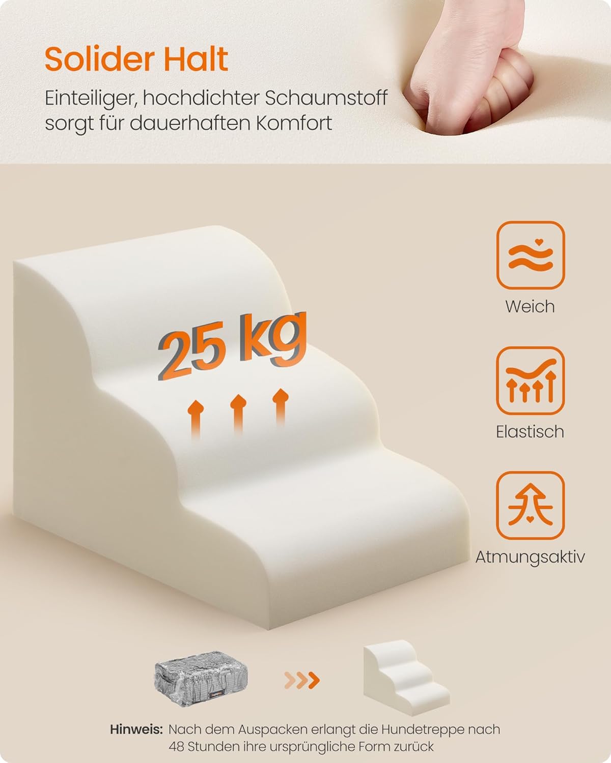 Увереност с всяка стъпка: Изработена от пяна с висока плътност, тази стълба за домашни любимци гарантира стабилност и издръжливост. Повърхността с корда осигурява сигурно захващане за лапите на вашия домашен любимец, а неплъзгащото се дъно с гумени издатини държи стълбата здраво на място на всеки под. Вашият домашен любимец може да се катери безопасно, а вие можете да си почивате спокойно.
