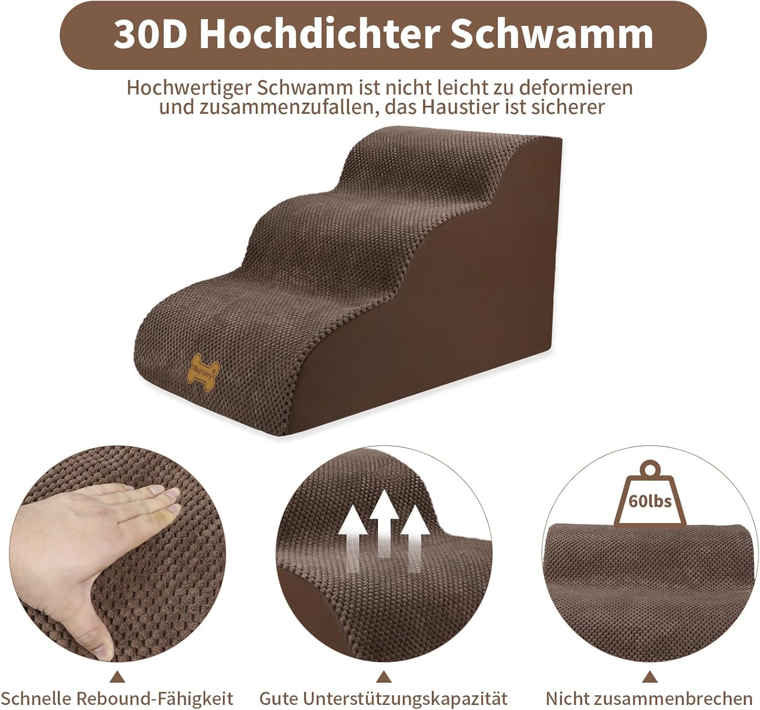 Стълби за кучета Nepfaivy за малки кучета, 3 нива, стълби за домашни любимци за легло и диван, изработени от гъба с висока плътност, стълби за кучета, рампа за кучета със сваляем, миещ се калъф и нехлъзгаща се основа, 60 x 40 x 40 см