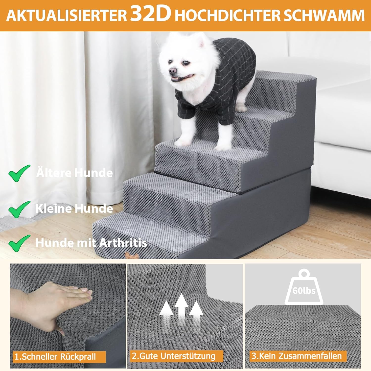 Стълби за кучета Nepfaivy за малки кучета, 5 нива, стълби за кучета за легло и диван, изработени от гъба с висока плътност, стълби за домашни любимци със сваляем, миещ се калъф и нехлъзгаща се основа, 76 x 40 x 56 см