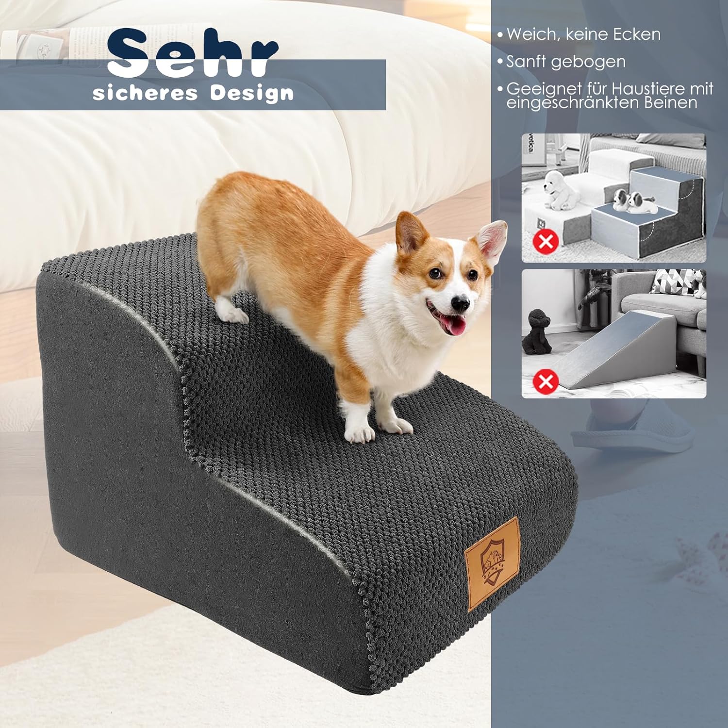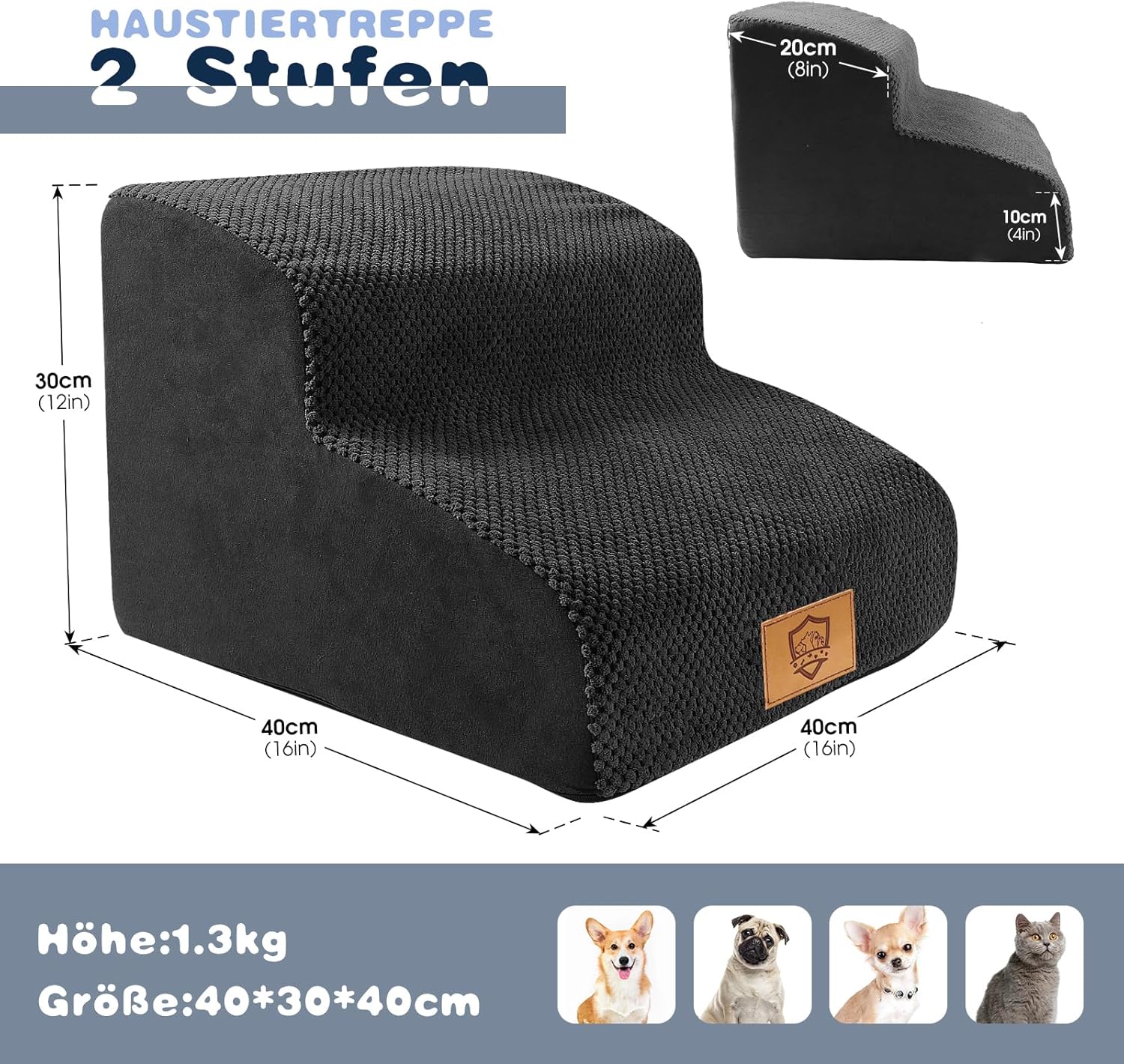 Стълби за кучета Thihome за малки кучета, 2 стъпала, неплъзгащи се котешки стълби за стари котки, диван за стълби за домашни любимци с калъф, който може да се пере, черен