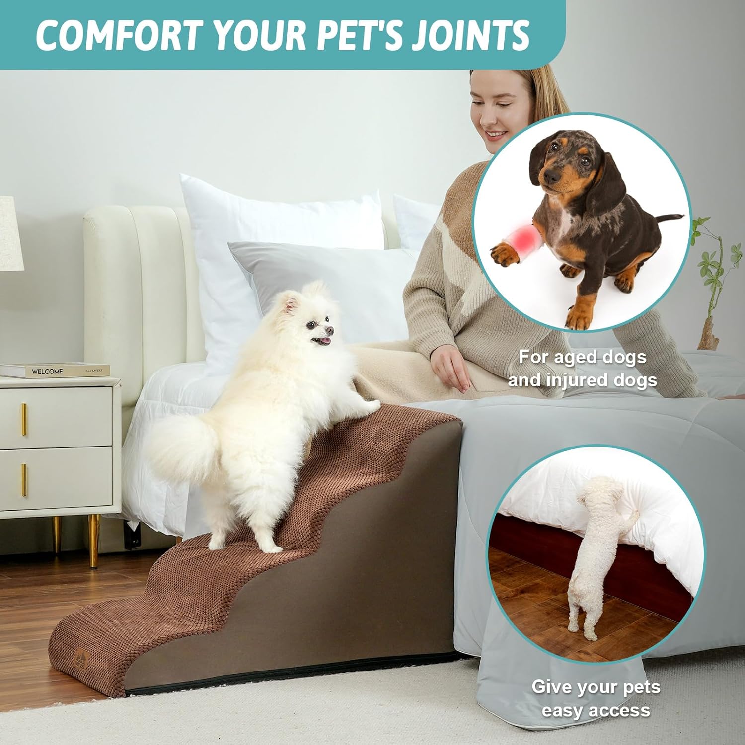 Стълби за кучета за малки кучета 50 см, Стълби за легло за домашни любимци, изработени от гъба с висока плътност, Рампа за кучета с миещо се покритие и нехлъзгаща се основа, 40 x 72 x 50 см, 4 стъпала, Кафява