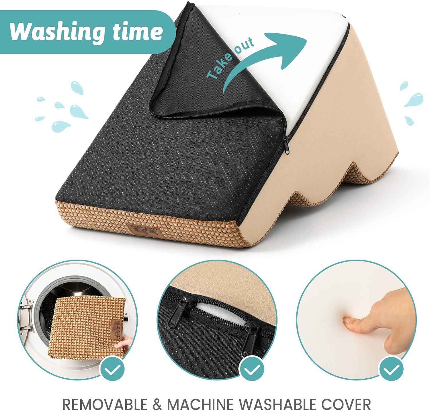 • Лесно сглобяване или почистване: За лесно транспортиране, стълбите за кучета се закупуват във вакуумно компресирана опаковка. След отваряне на вакуумната опаковка, покрийте с непромокаемо покритие. След 48 часа пълно засмукване на въздух, стълбите се връщат в първоначалната си форма. Изчакайте формата да се възстанови. Промокаемото покритие може да се пере в пералня или на ръка. Забележка: Моля, не перете гъбата.