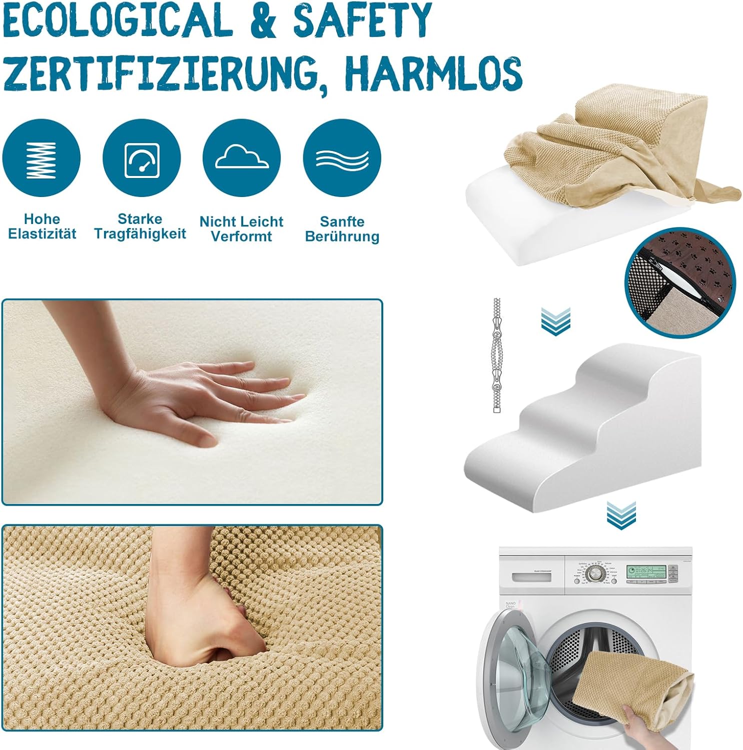Стълби за кучета Zvonema за малки кучета, 3 стъпала, миещи се стълби за домашни любимци, изработени от гъба с висока плътност, водоустойчива рампа за кучета с нехлъзгаща се основа, 60 x 40 x 40 см