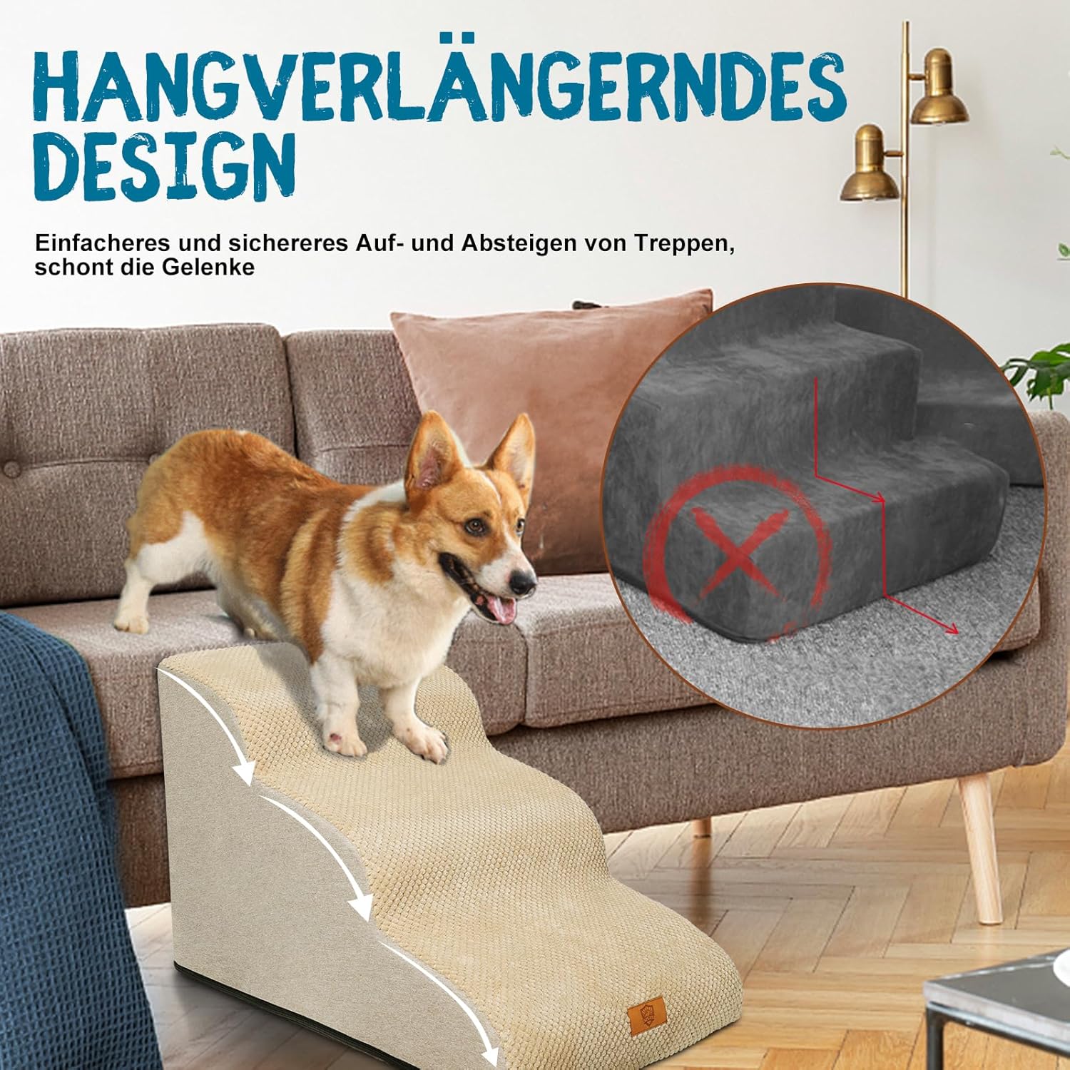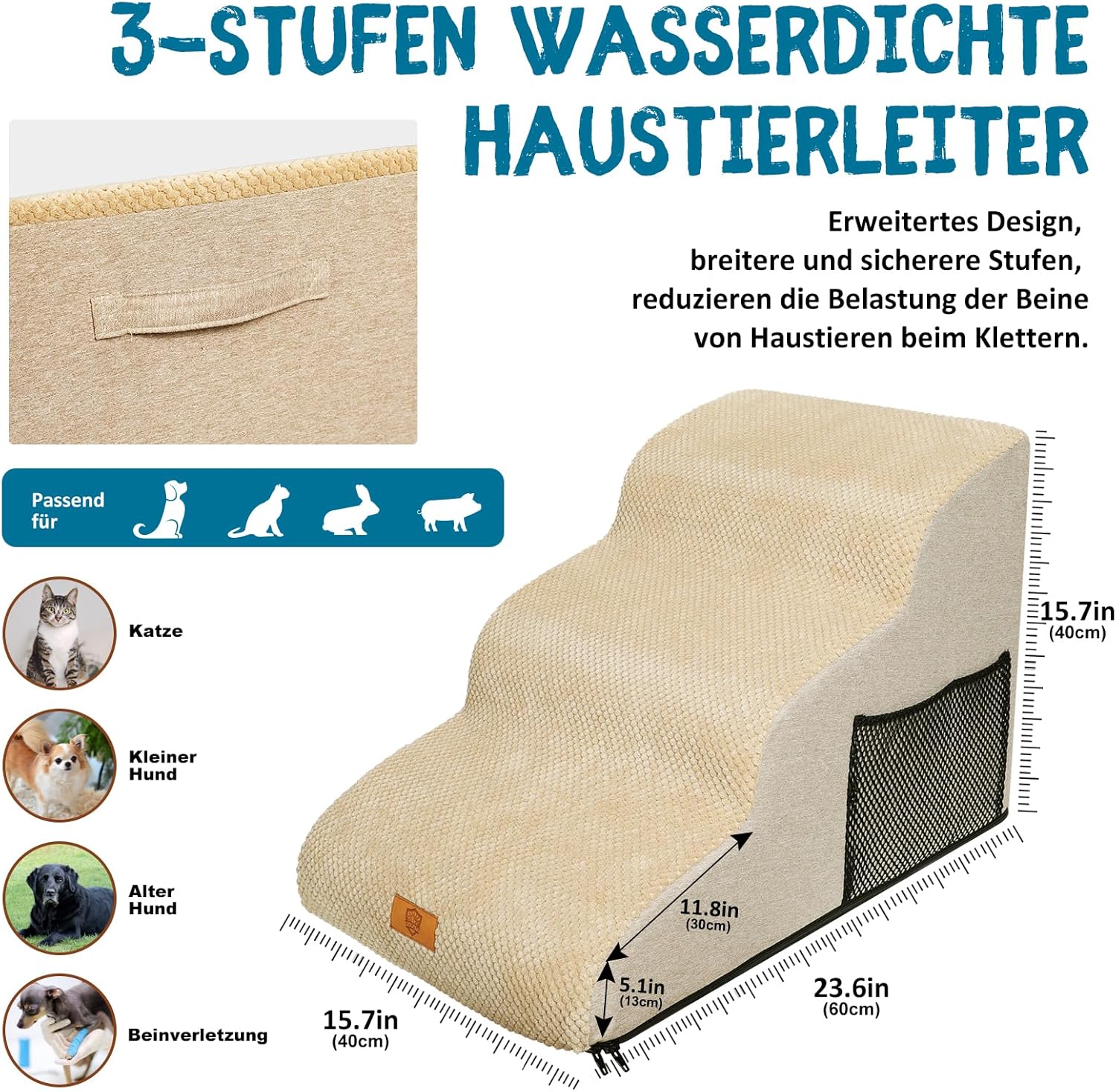 • Помощ за катерене: Стълбите за малки кучета помагат на вашите домашни любимци да стигнат безопасно до леглото или седалката до прозореца, без да скачат или да се напрягат. 1 и 2 стъпала са подходящи за столове, дивани или кушетки, 3 стъпала са подходящи за легла или автомобили. Мека сива холандска поларена материя, за да се чувстват вашите домашни любимци комфортно. Идеални за употреба на закрито и открито.