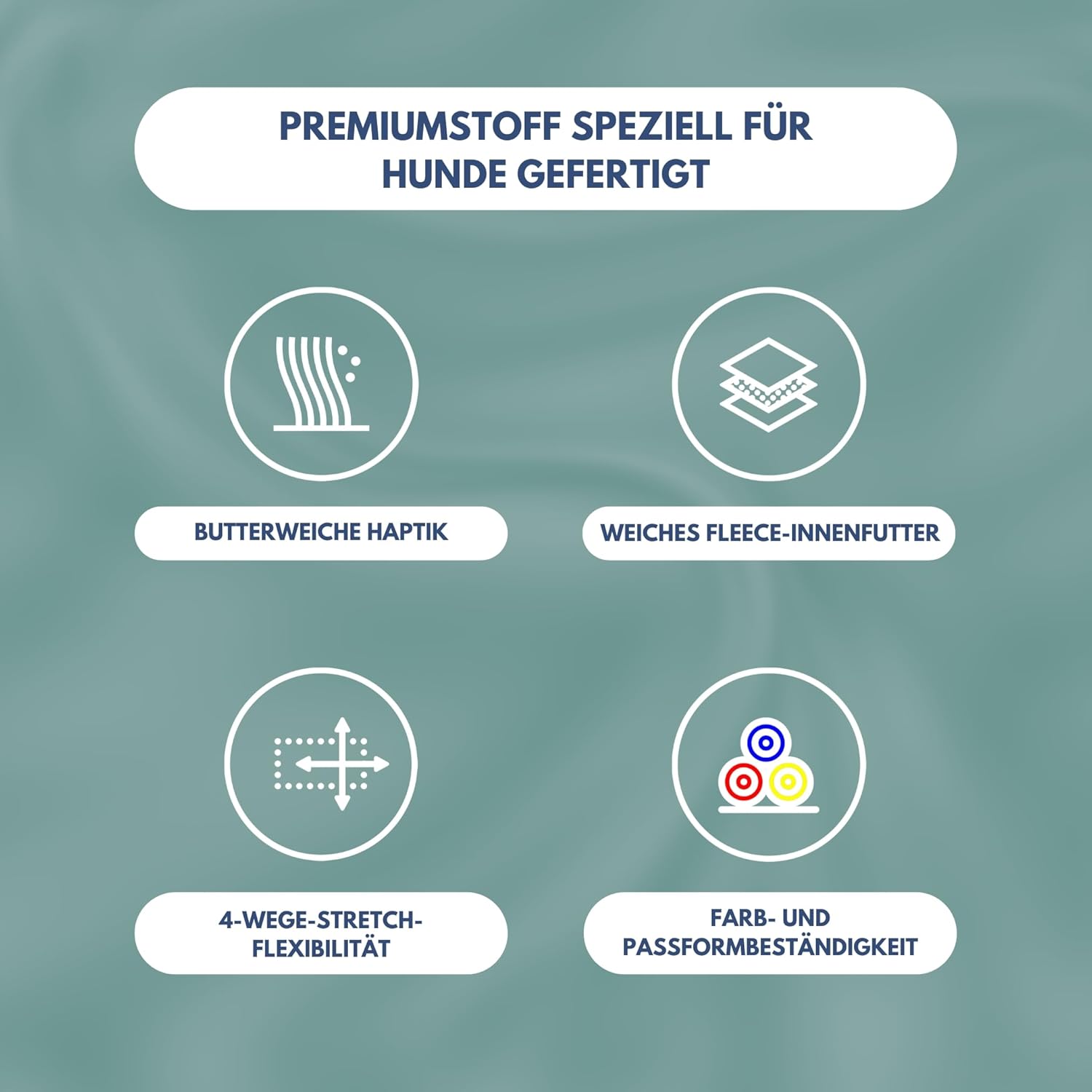 • ПЛАТОВЕ С ПРЕМИУМ КАЧЕСТВО Нашата иновативна еластична материя тип „масло“ е мека, издръжлива и се разтяга в 4 посоки, което осигурява оптимална гъвкавост и комфорт за кучетата.