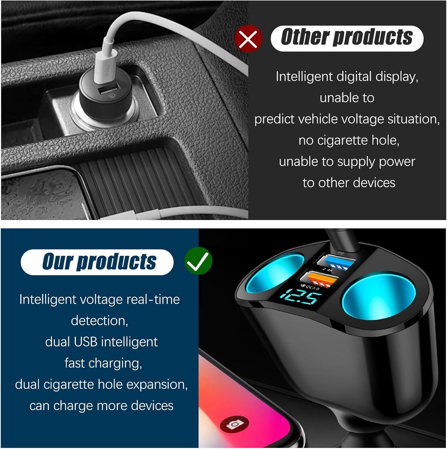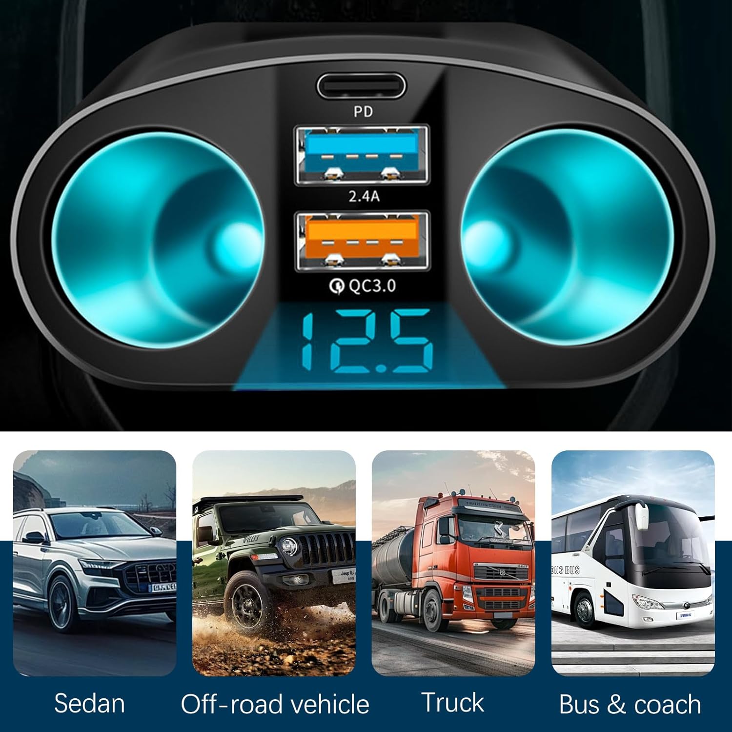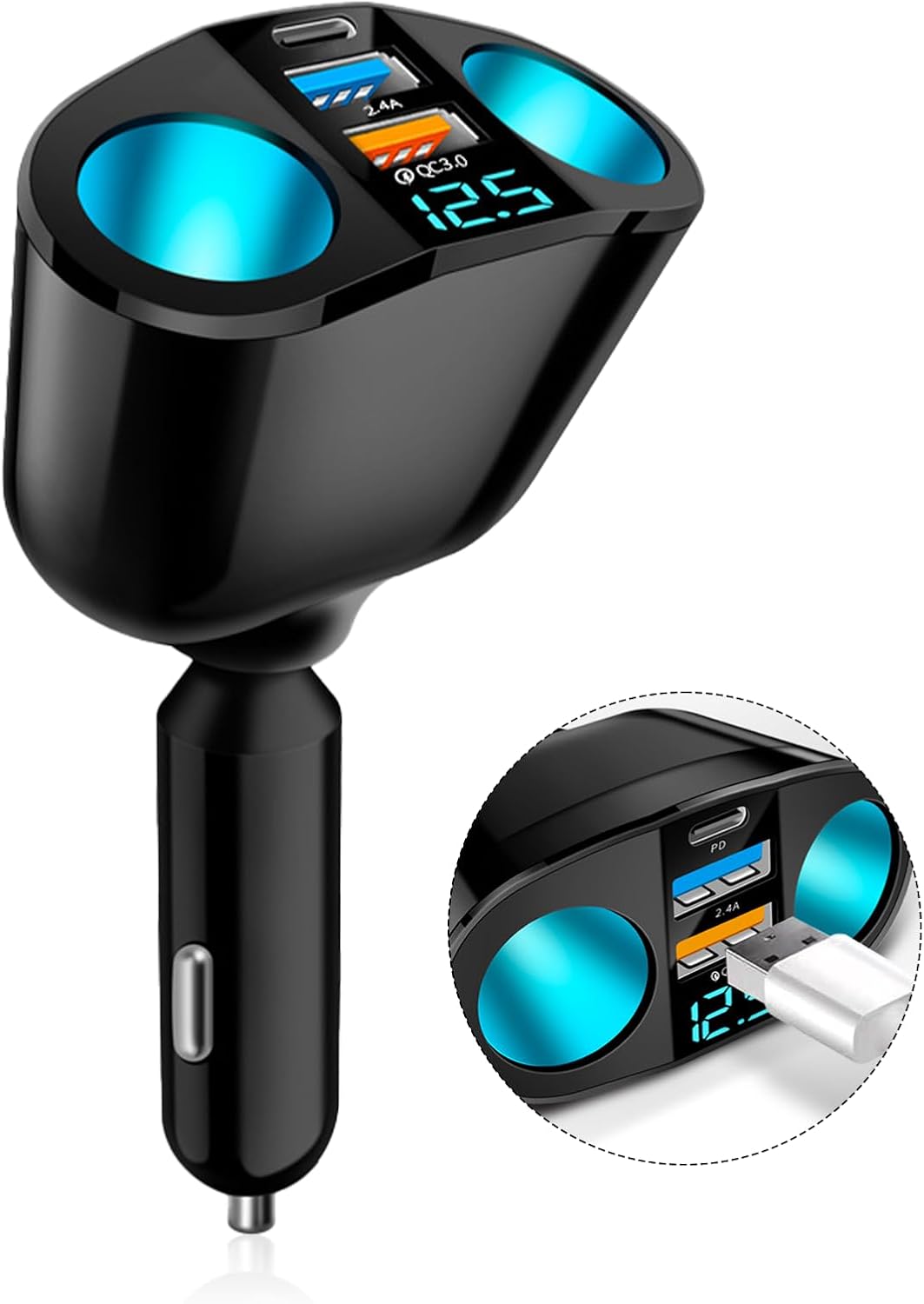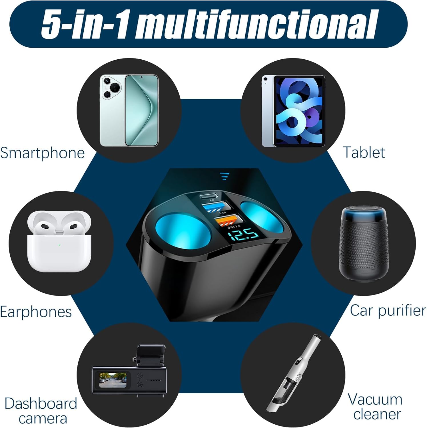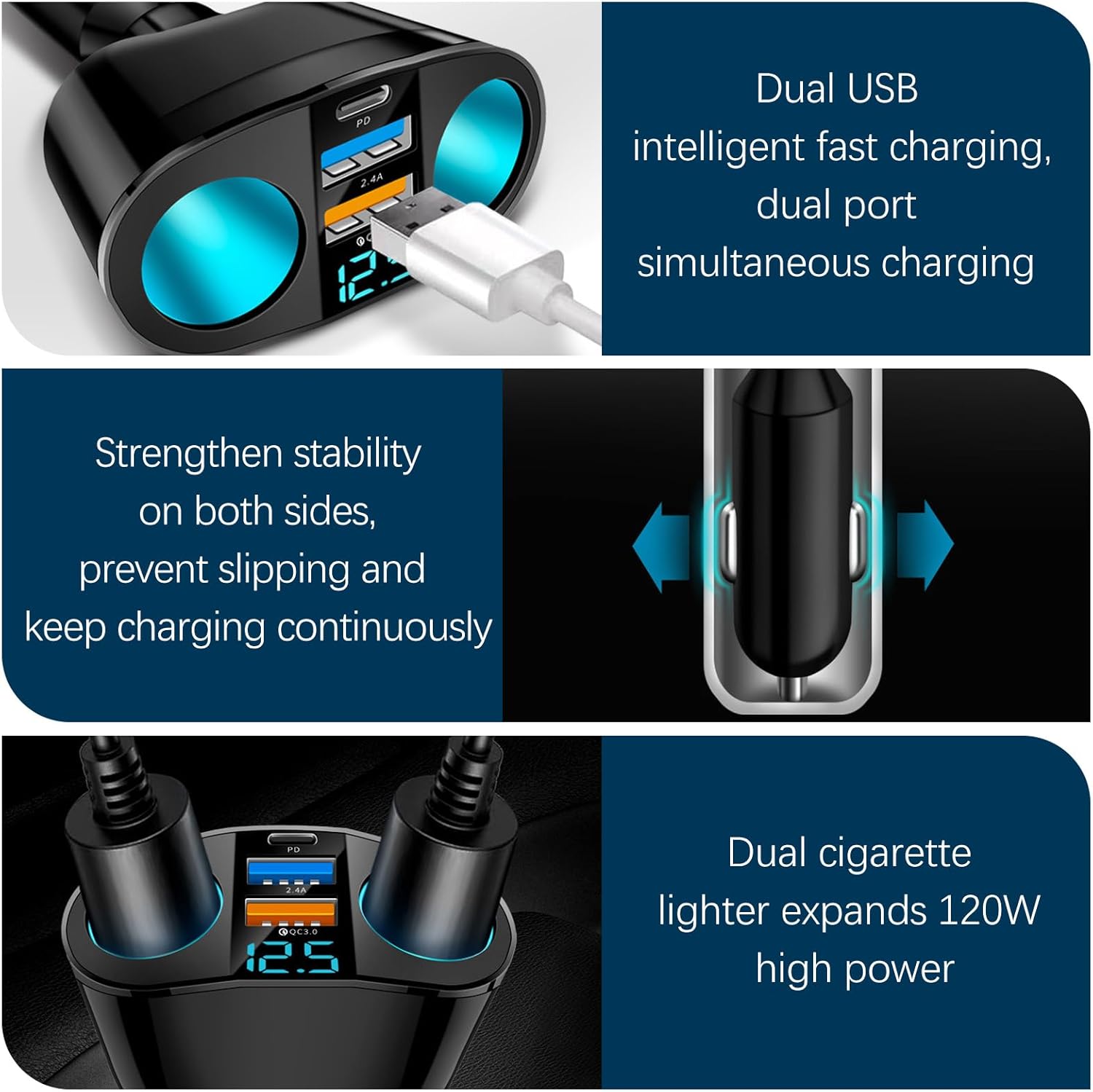 Открийте това многофункционално зарядно за кола и придайте нов блясък на мобилния си начин на живот. Този висококачествен адаптер за запалка е идеалното решение за зареждане на вашите устройства по време на шофиране. С два USB порта, един PD порт и два гнезда за запалка, можете да зареждате множество устройства едновременно, като смартфони, таблети и GPS навигационни устройства, и вече не е нужно да се притеснявате, че батериите ви ще се изтощят в движение.