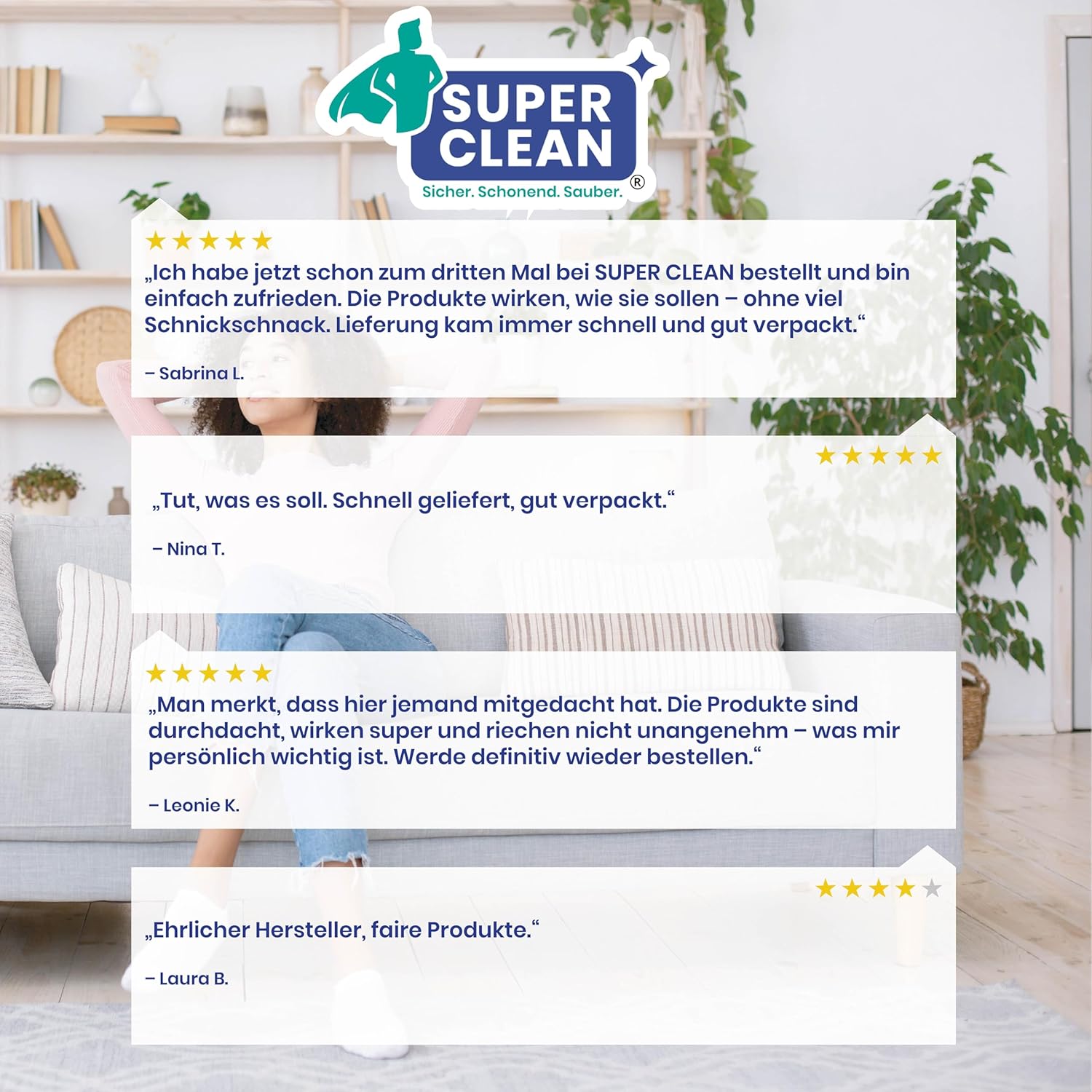 • SUPER CLEAN Препарат за почистване на тапицерии и килими за надеждно почистване на дивани, фотьойли, килими, тапицерии, калъфи за седалки и автомобилни седалки.