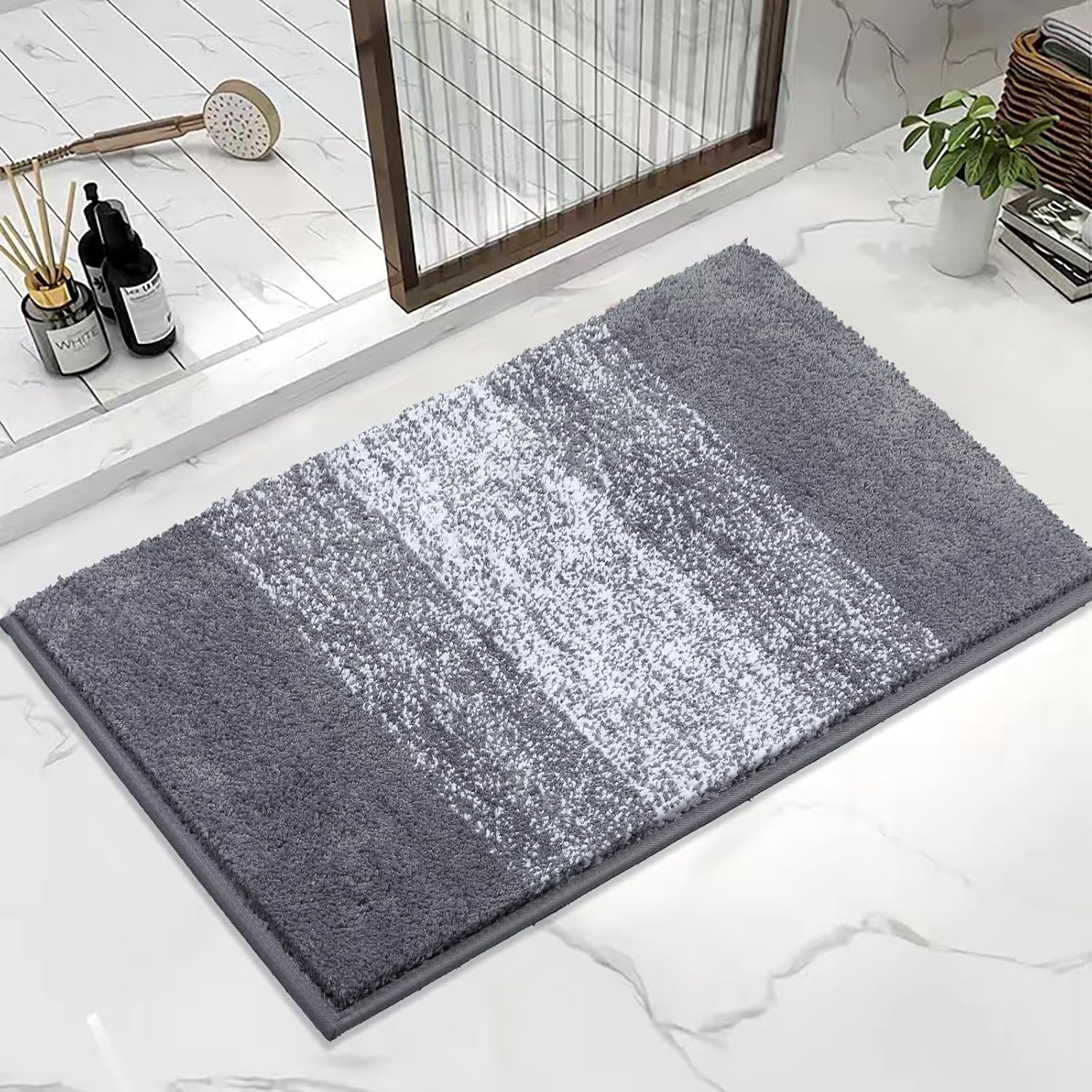 Супер меки постелки за баня, сив микрофибърен килим за баня с висок косъм, неплъзгащ се, може да се пере в пералня, постелка за баня, постелки за душ, абсорбираща постелка за баня 50 x 80 см
