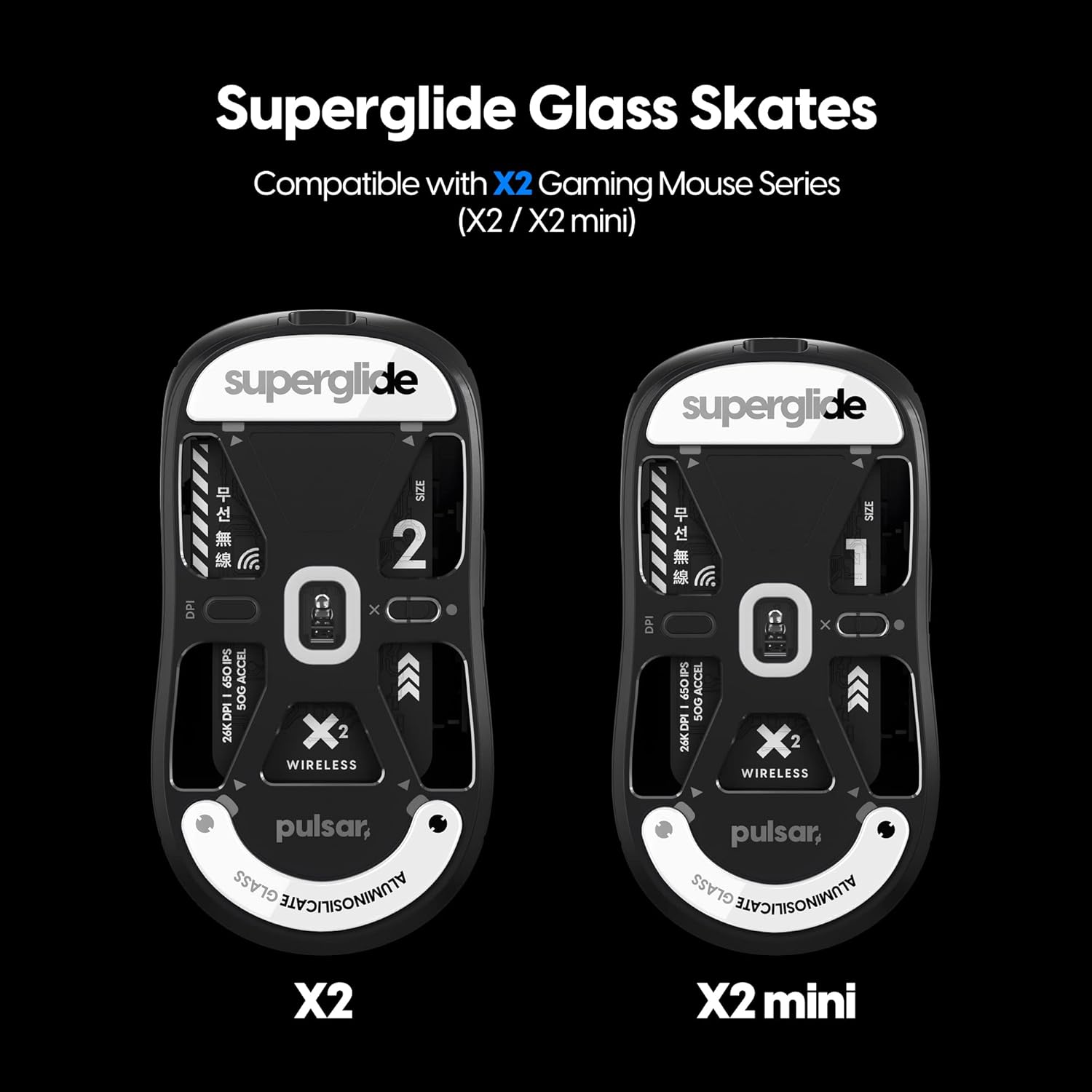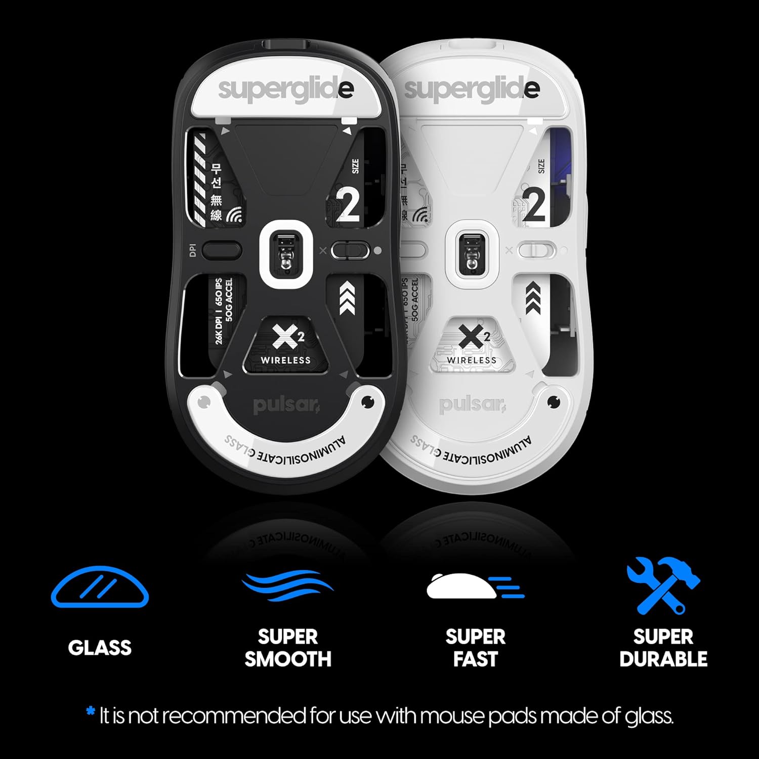 Superglide Най-бързи и гладки крачета/кънки за мишка, изработени от ултра здраво безупречно стъкло, супер бърза, гладка и издръжлива подметка за Pulsar X2 и X2 Mini безжична геймърска мишка (бяла)