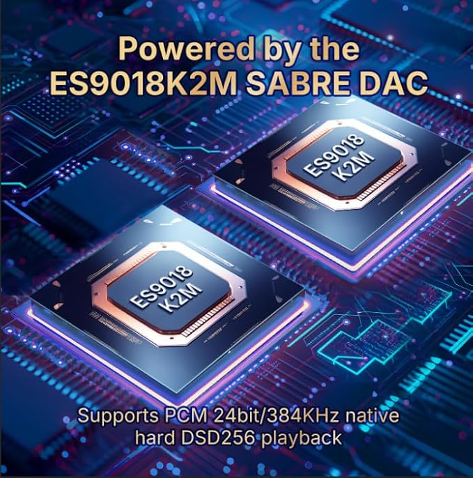 The SABRE ESS Dual DAC ES9018K2M chips ensure that the powerful 32-bit 2-channel audio D/A converter delivers a DNR of up to 127 dB and a THD+N of 120 dB, a level of performance that satisfies even the most demanding audio enthusiasts.